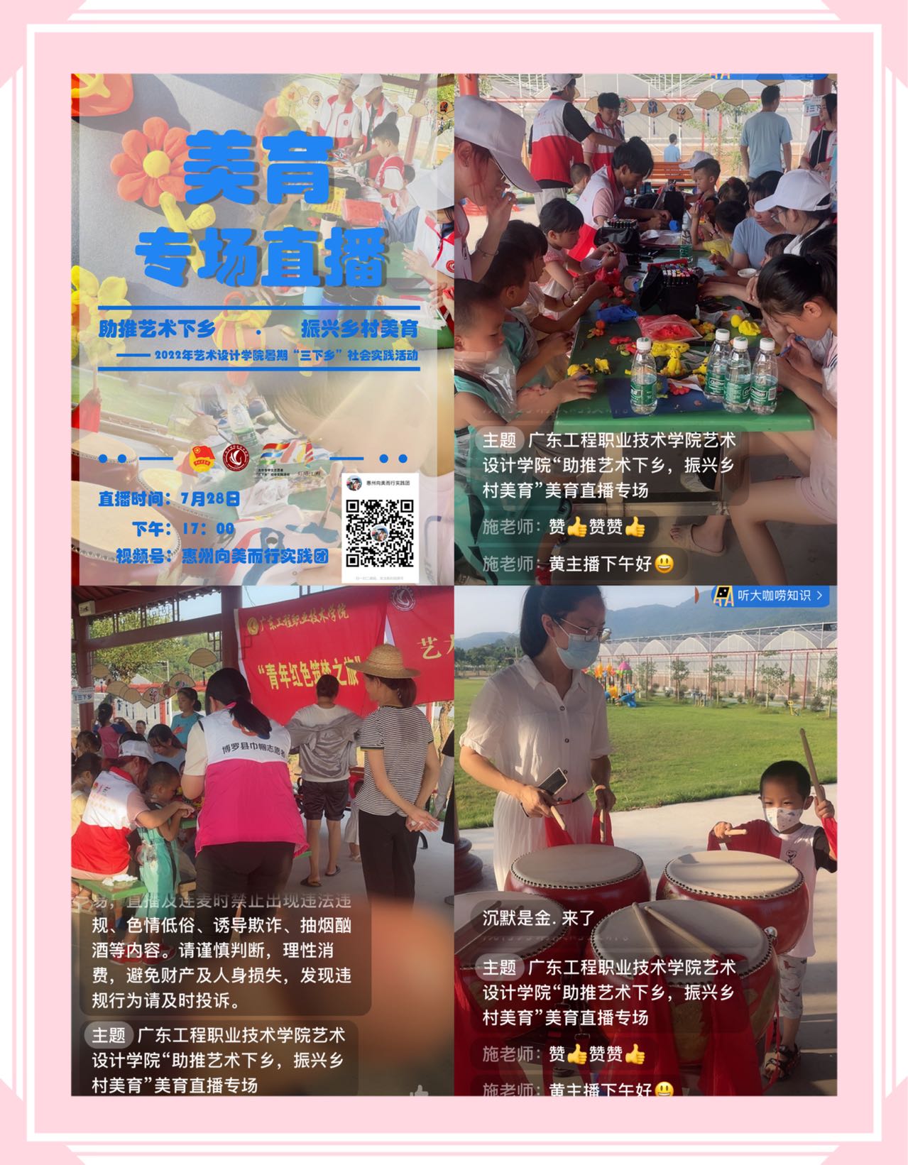 5.美美与共“村艺”盎然直播,通过直播,带领大家了解本次暑期美育三下乡活动现场,领略一幅“艺术赋能乡村,美育共同富裕”的生动画卷。