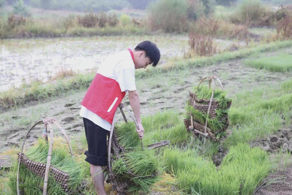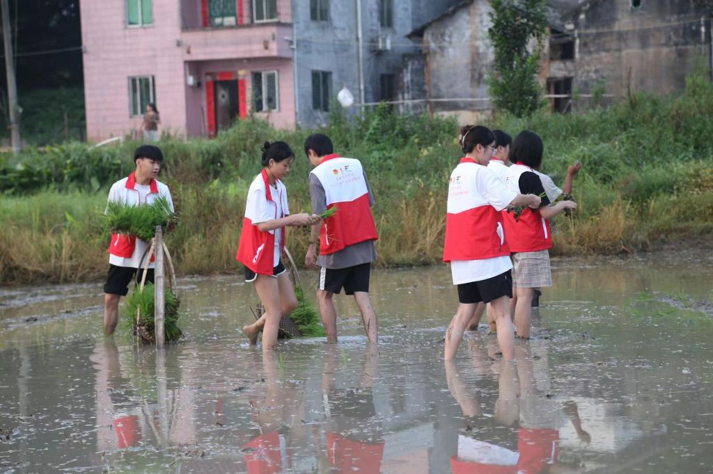 为了弘扬劳模精神和劳动实干的精神,队伍成员在盛夏骄阳下,在村民指导下在农田进行插秧。青春的汗水在田野挥洒,起伏的身姿是学子们用实践行动诠释务农助农我在路上的最好证明。