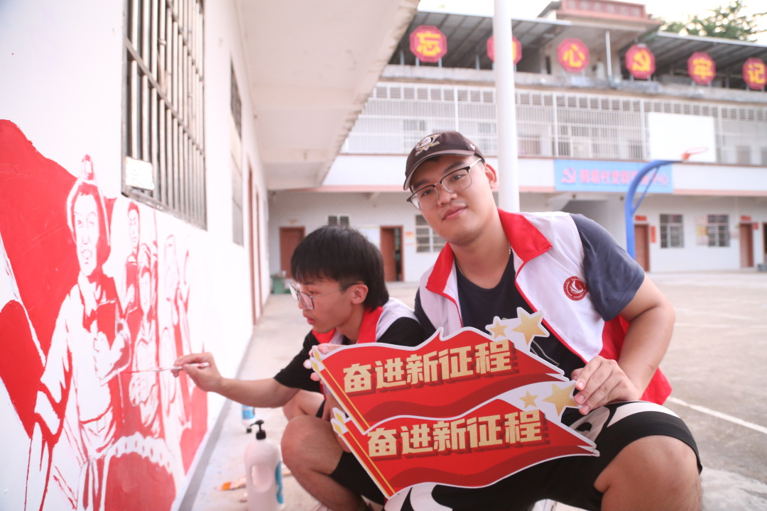 为喜迎党的二十大胜利召开,队员们运用墙绘、图像、文字等方式记录、传播当地特色文化,用自身行动助力乡村振兴,充分利用革命文化和乡村振兴实践成果开展思想教育,引导青年学生以多种形式记录广东乡村历史、文化传承、精神风貌、建设成就。