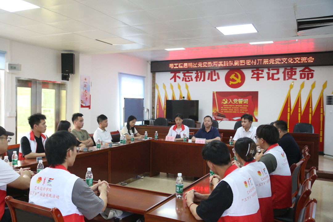 “启明星”实践队同河源市东源县鹤塘村委开展了党史文化交流活动。学生代表介绍了学院党建的重点项目和做法,得到了村委书记的赞扬。村委书记也针对乡村振兴发展、当地产业经济发展等问题,讲述了当地的特色办法。