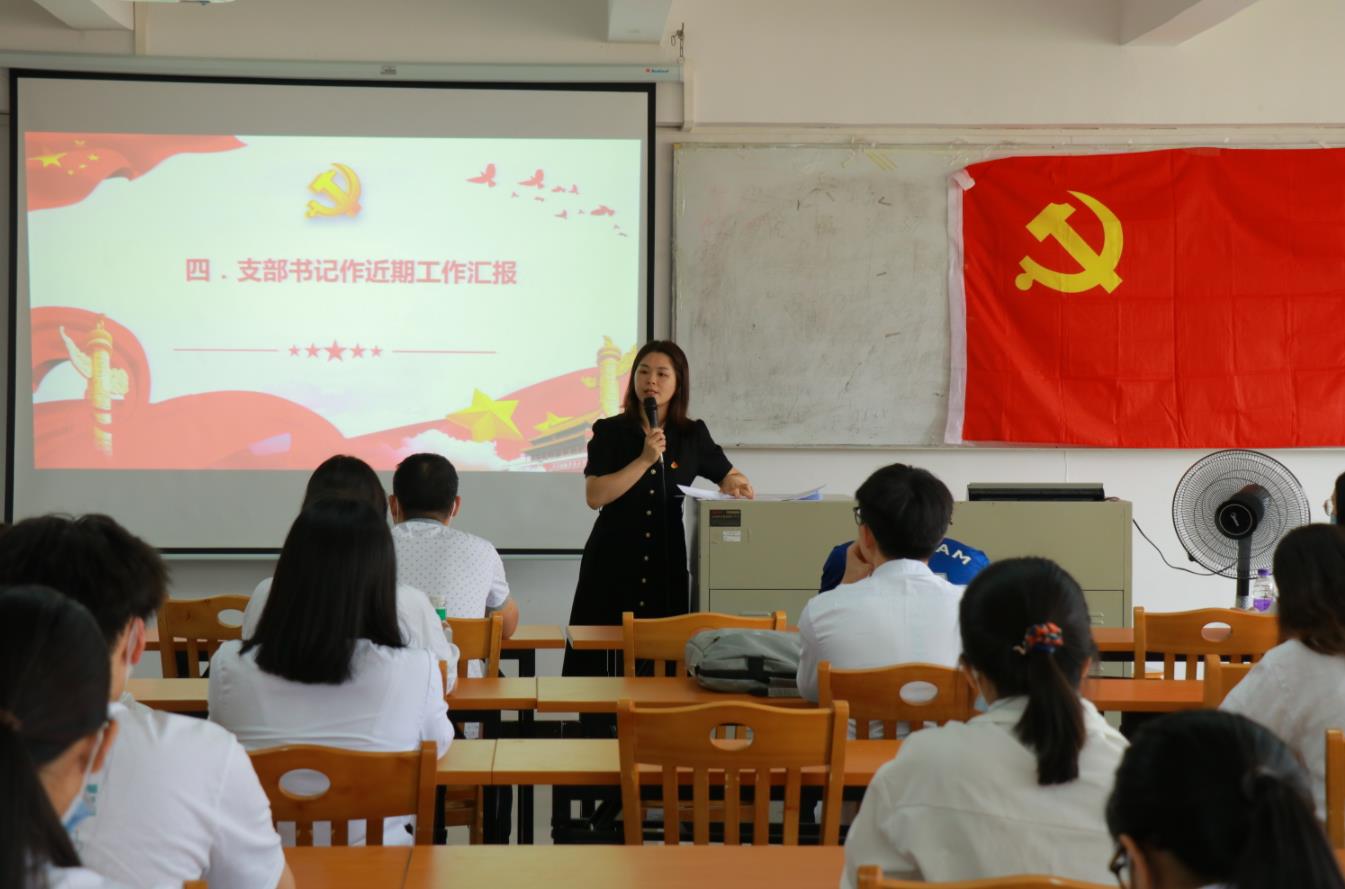 最后,学生党支部书记杨容对学生党支部本学期的台账做了详细汇报,包括开展新生班级入党启蒙、组织主题党日学习活动、分党校组织入党积极分子培训班、第三期“青春向党”宣讲团宣讲活动等等。并且对近期党支部的工作进行了总结,对存在的问题提出批评和改善意见。