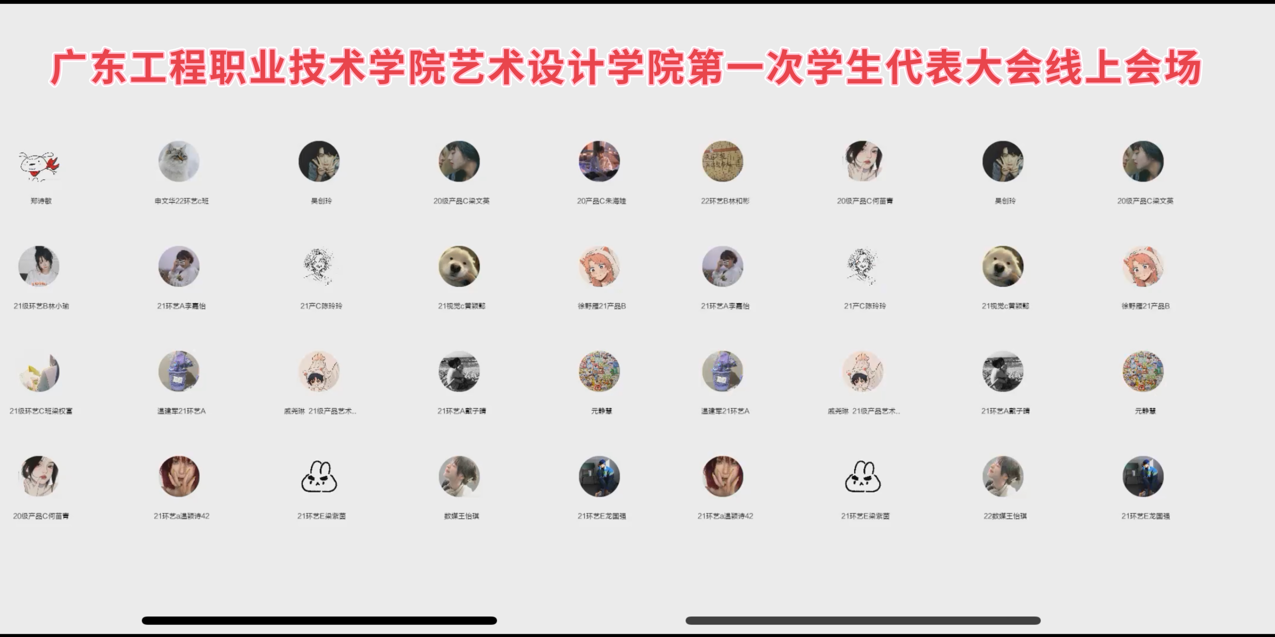 11月10日,艺术设计学院第一次学生代表大会在实训五602会议室召开,为严格配合防疫要求,会议采取了线上线下相结合的方式。学院党总支副书记焦英,辅导员黄洋、杜人、尹国胜,校学生会代理执行主席李小宝及以及128名学生代表参加了大会。