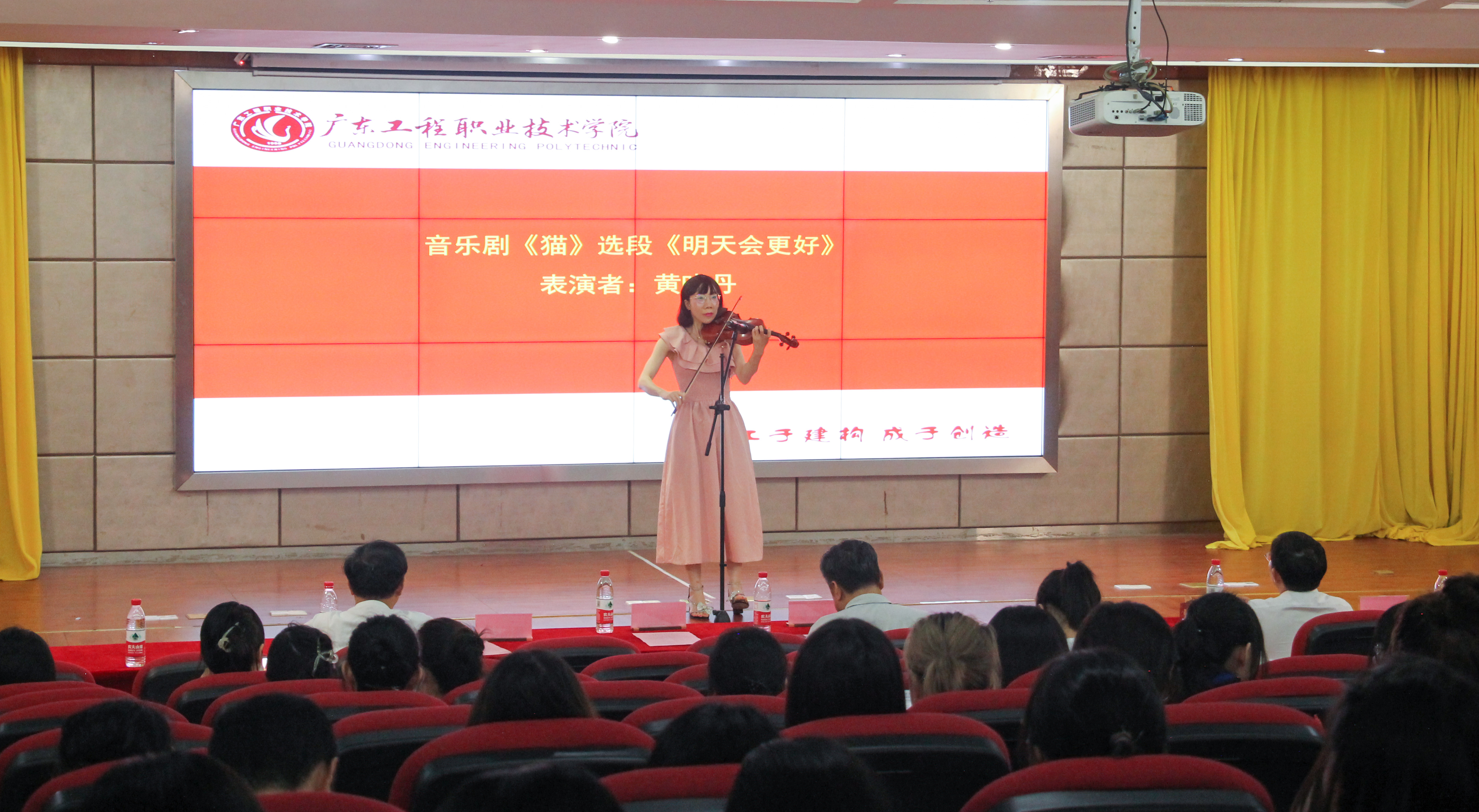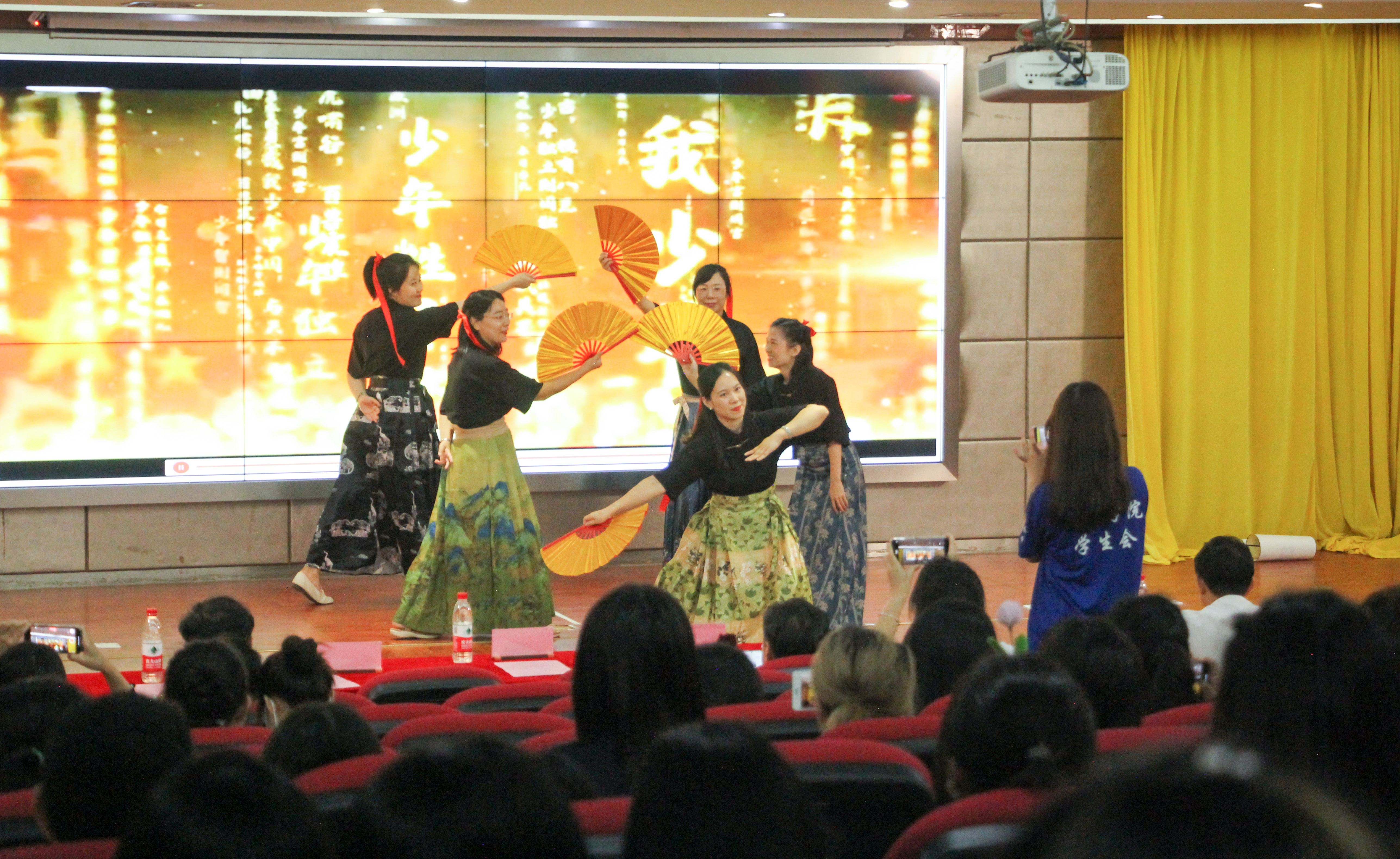 教师代表黄晓丹则通过小提琴演奏起了《明天会更好》,通过洪亮饱满的小提琴声把美好愿望送进每一位毕业生心里;学院学工队伍还给大家带来了充满活力的扇子舞《骁》,祝福毕业生前程似锦、一路生花。