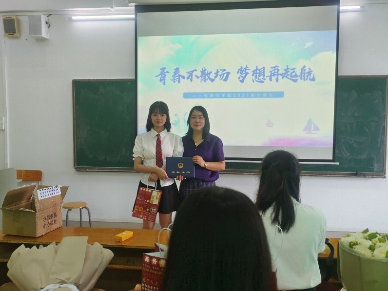 6月20日毕业生离别之际,商务学院在做好学生服务工作的同时,为毕业生制作了精美的纪念品,增添满满的“仪式感”。在毕业生的祝福视频中,一帧帧画面再现了商务学院2023届毕业生在校三年的点点滴滴,唤起大家集体的共同记忆,学院领导和老师给予了浓浓的祝福。毕业生活动中,有师长们对毕业生的深情寄语,也有毕业生对大学生活的美好回忆,所有种种都将化作他们继续前行的动力。