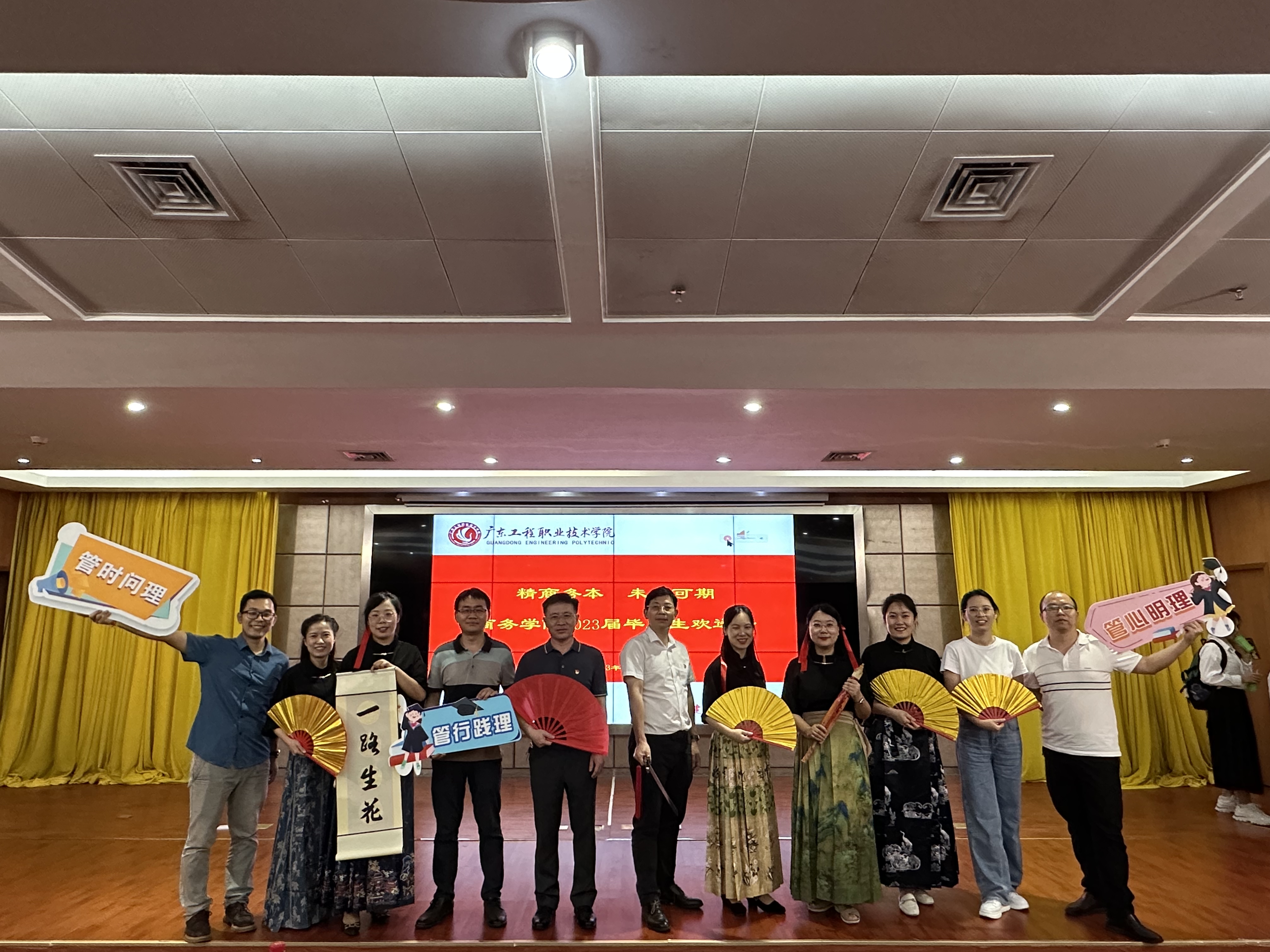 6月19日18:30,我院在学术报告厅举办了“精商务本,未来可期”商务学院2023届毕业欢送会。参加欢送会的有学院院长刘迎春、党委书记吴华长、党委副书记石来斌、学院副院长丁慧鸽、专业主任、班主任、辅导员、毕业生及其他学生代表。毕业不散场,青春梦起航。洋溢着依依惜别之情,怀揣着学院的希冀与祝福,2023届毕业生欢送会在“凤凰花开的路口”歌声中结束。本次毕业欢送会将学院文化和大学生的青春风貌相结合,旨在将学院“精商务本”文化理念贯穿到三全育人的过程中,引导毕业生树立正确的世界观、人生观、价值观。