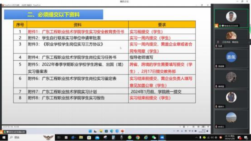 为进一步精准掌握毕业生岗位实习动态,有序推进岗位实习工作的顺利进行,人工智能学院于2024年月26日线上组织召开2024届毕业生岗位实习工作推进会。人工智能学院副院长林明方、各专业负责人、毕业班辅导员及全体岗位实习指导老师参加会议。