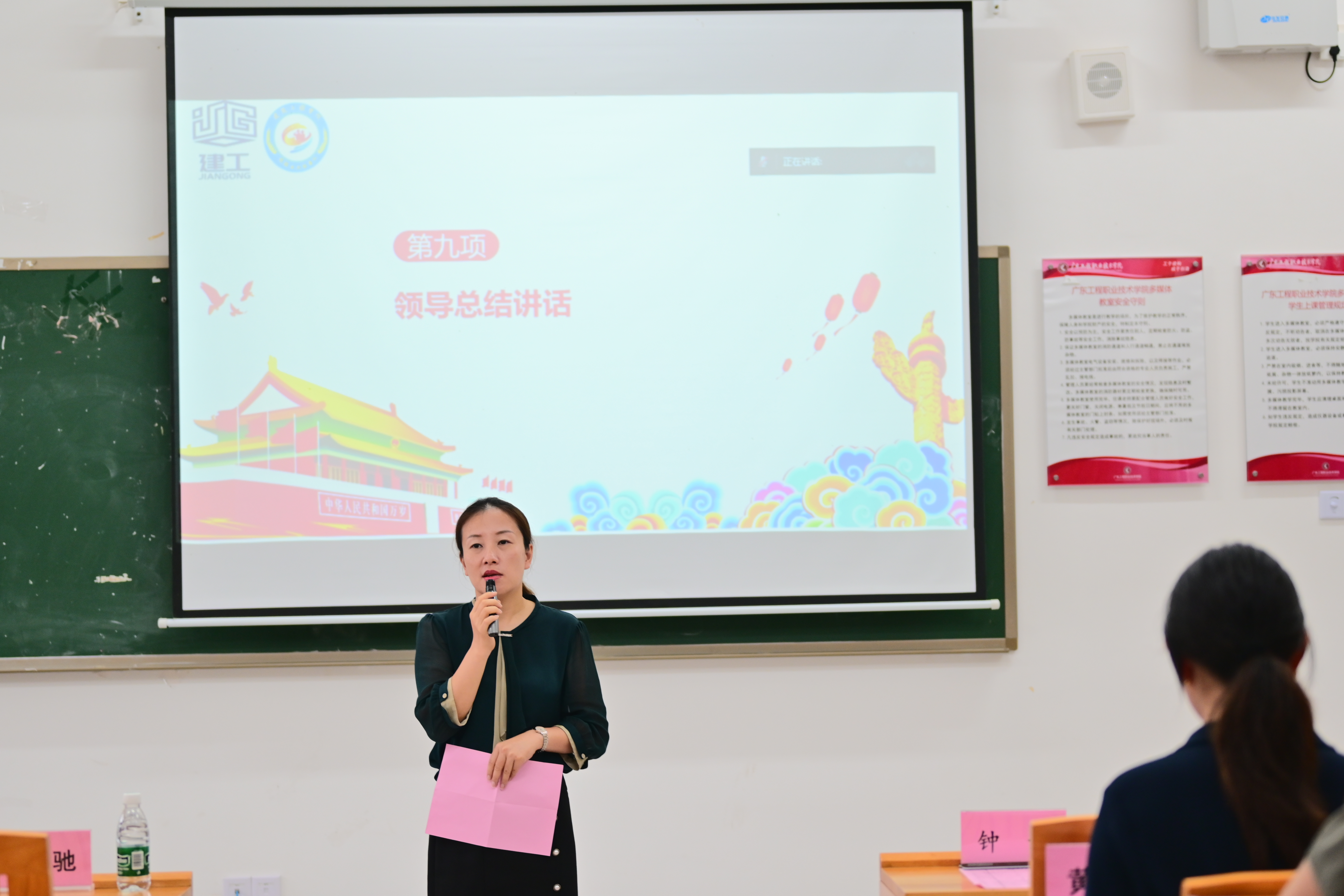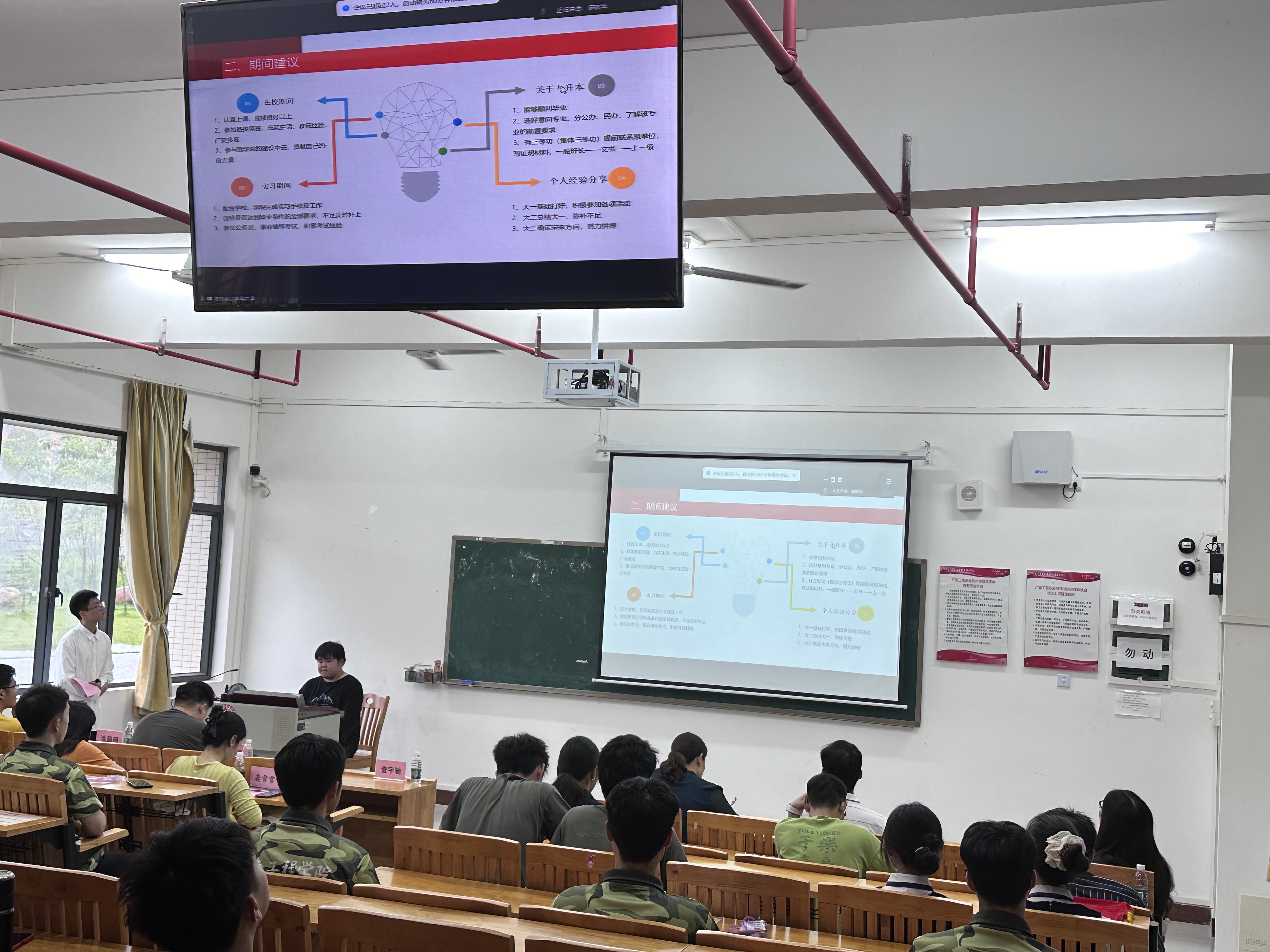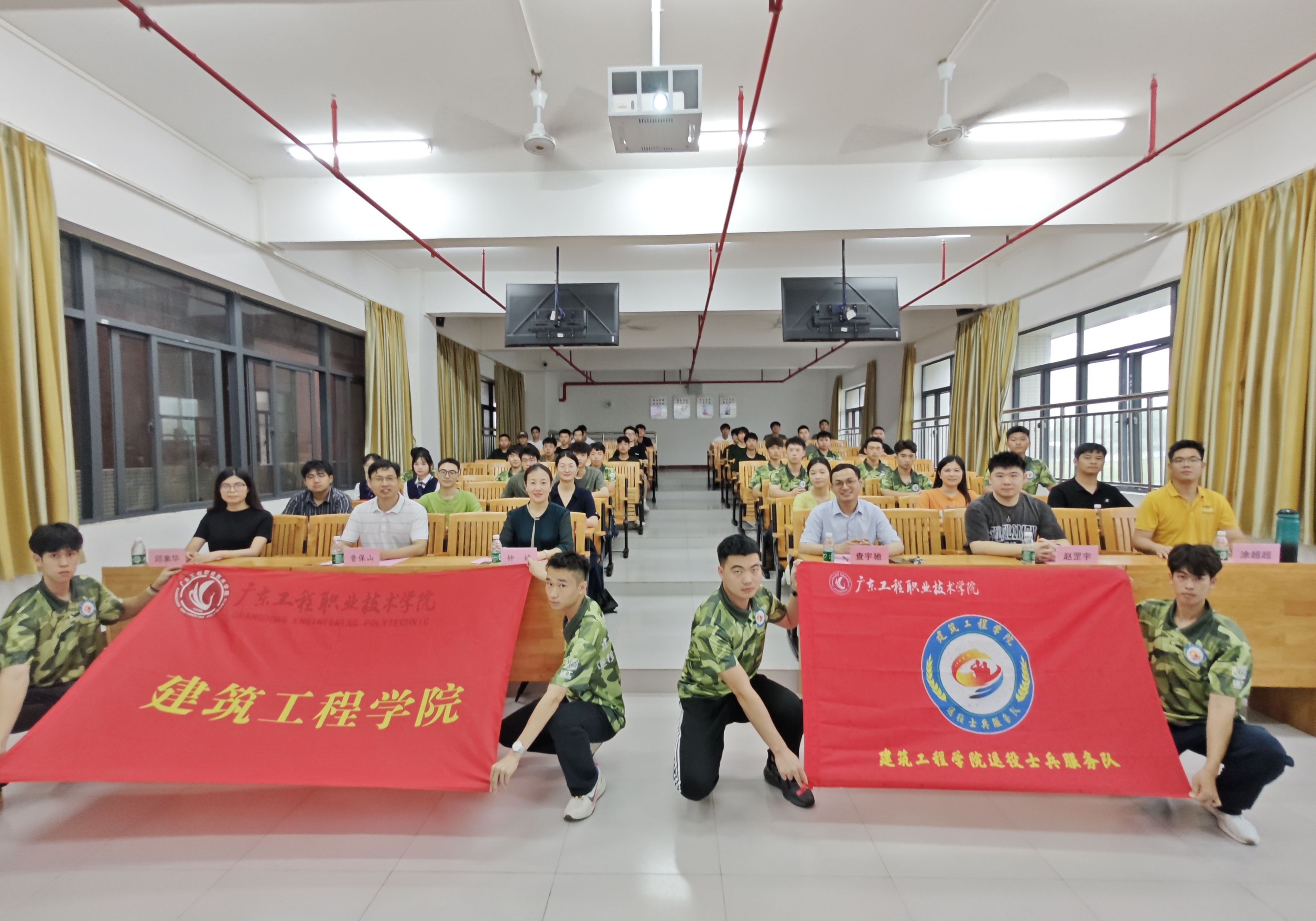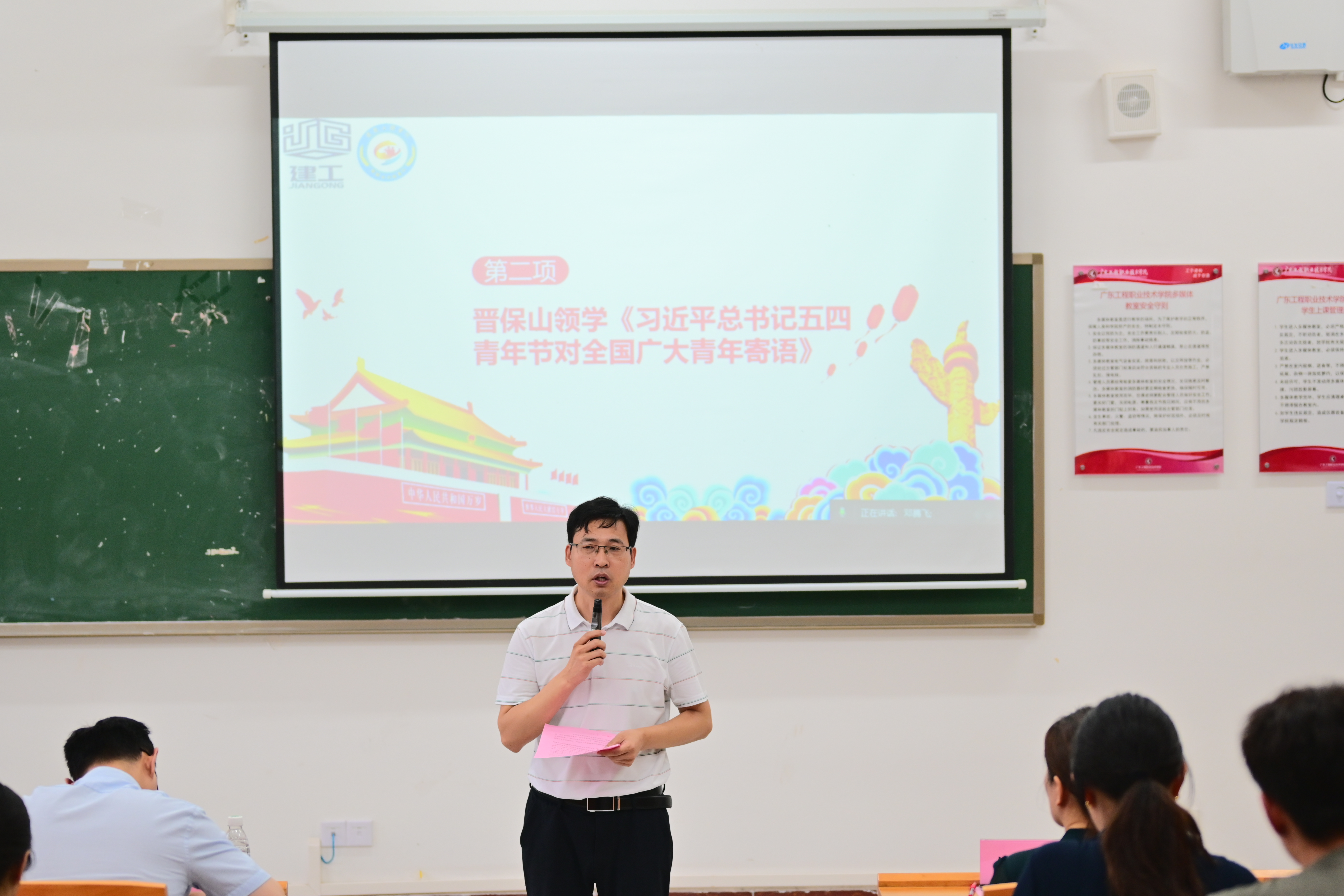 为加强对退役士兵大学生的思想政治教育,帮助退役士兵大学生更好地了解普通专升本考试政策及报考程序、备考技巧,6月14日中午,由建筑工程学院(以下简称“学院”)主办,学院退役士兵服务队、晋保山辅导员工作室承办的退役士兵大学生思政教育课暨普通专升本经验分享会在省职教城(清远)校区Q1-122举行,学院党委书记钟婷,学生工作部(招生与就业指导中心)副部长查宇驰、宣传(武装)部赵罡宇老师,学院全体辅导员,晋保山辅导员工作室全体成员,学院2022、2023级全体退役士兵大学生,机电(电梯)工程学院、财经学院退役士兵大学生代表等60余人参加了此次活动。