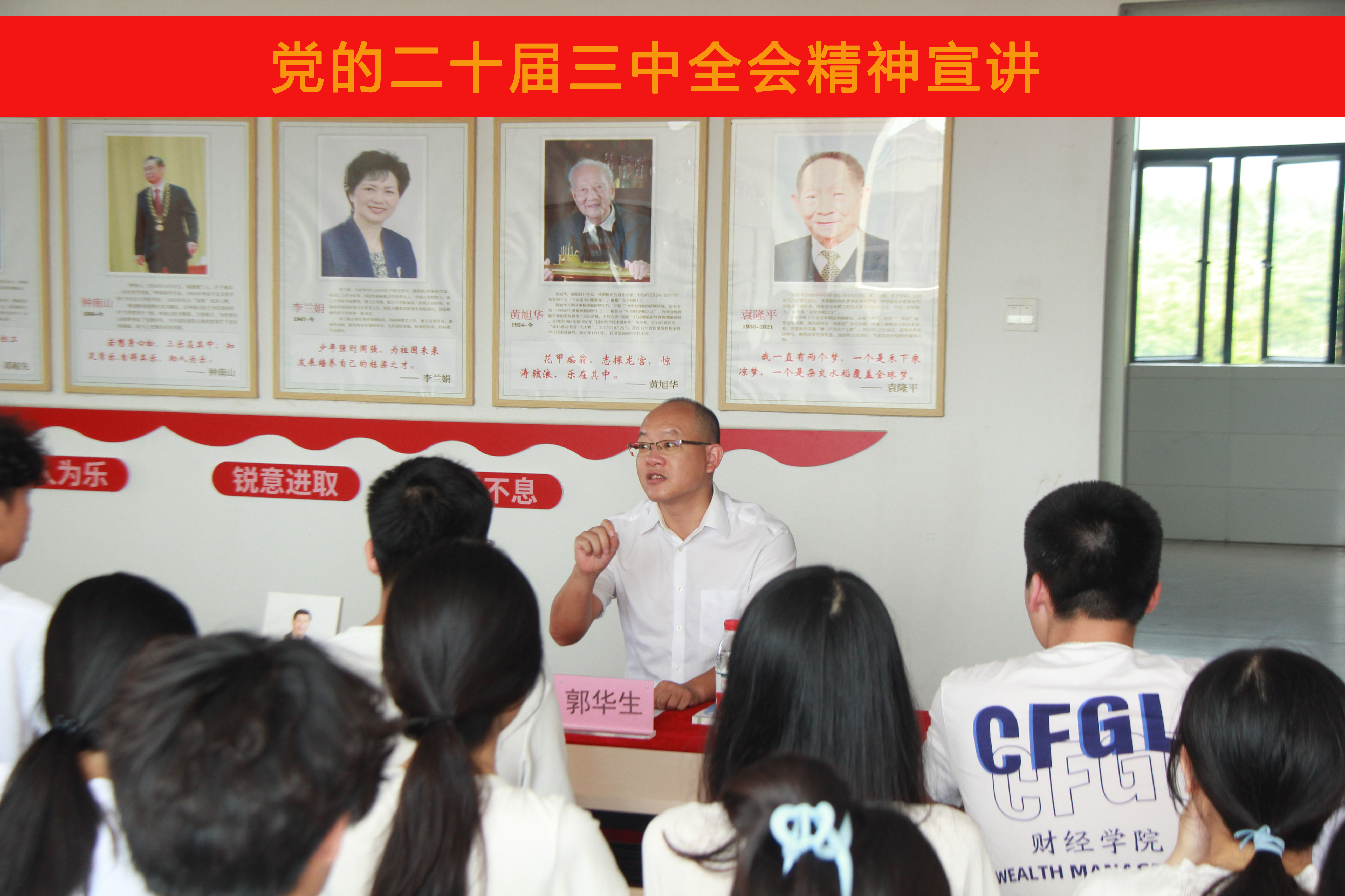 9月13日下午,财经学院邀请了马克思主义学院院长郭华生教授深入财经学院“一站式”学生社区,为师生们开展了一场党的二十届三中全会精神宣讲活动,此次活动不仅丰富了师生们的政治理论学习,也进一步推动了学院“一站式”学生社区发挥思政引领作用的创新和发展,获得了师生高度好评!
