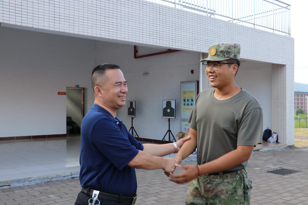 接着,林明方、李家标、辅导员老师与带队教官深入交谈,详细了解新生的军训情况,充分肯定了学院学生在军训中展现出的良好军容军貌。叮嘱同学们在训练中要遵守纪律,认真训练,提醒大家做好防护措施,做好自身健康安全的第一责任人。