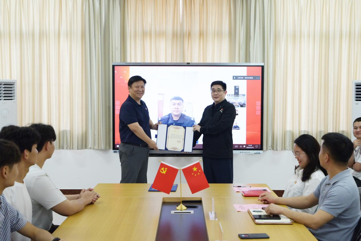随后,会议通过线上连线新疆生产建设兵团十四师昆玉市公安局,举行了庄重的聘任仪式。我校2021级物联网应用技术C班的党员毕业生艾山艾力・吐鲁洪同志被聘为学院“维汉双语”兼职辅导员,喀什地区地委组织部张德宗同志被聘为学院“返疆就业”学生职业规划指导教师。艾山艾力・吐鲁洪在发言中感谢了母校多年来的对他的培养之情。他表示“维汉双语”辅导工作是促进文化交流、助力学生成长的重要桥梁,自己将充分发挥语言和文化优势,通过线上线下多种方式,深入了解学生需求,为同学们提供全方位的帮助,推动民族团结与教育事业发展。