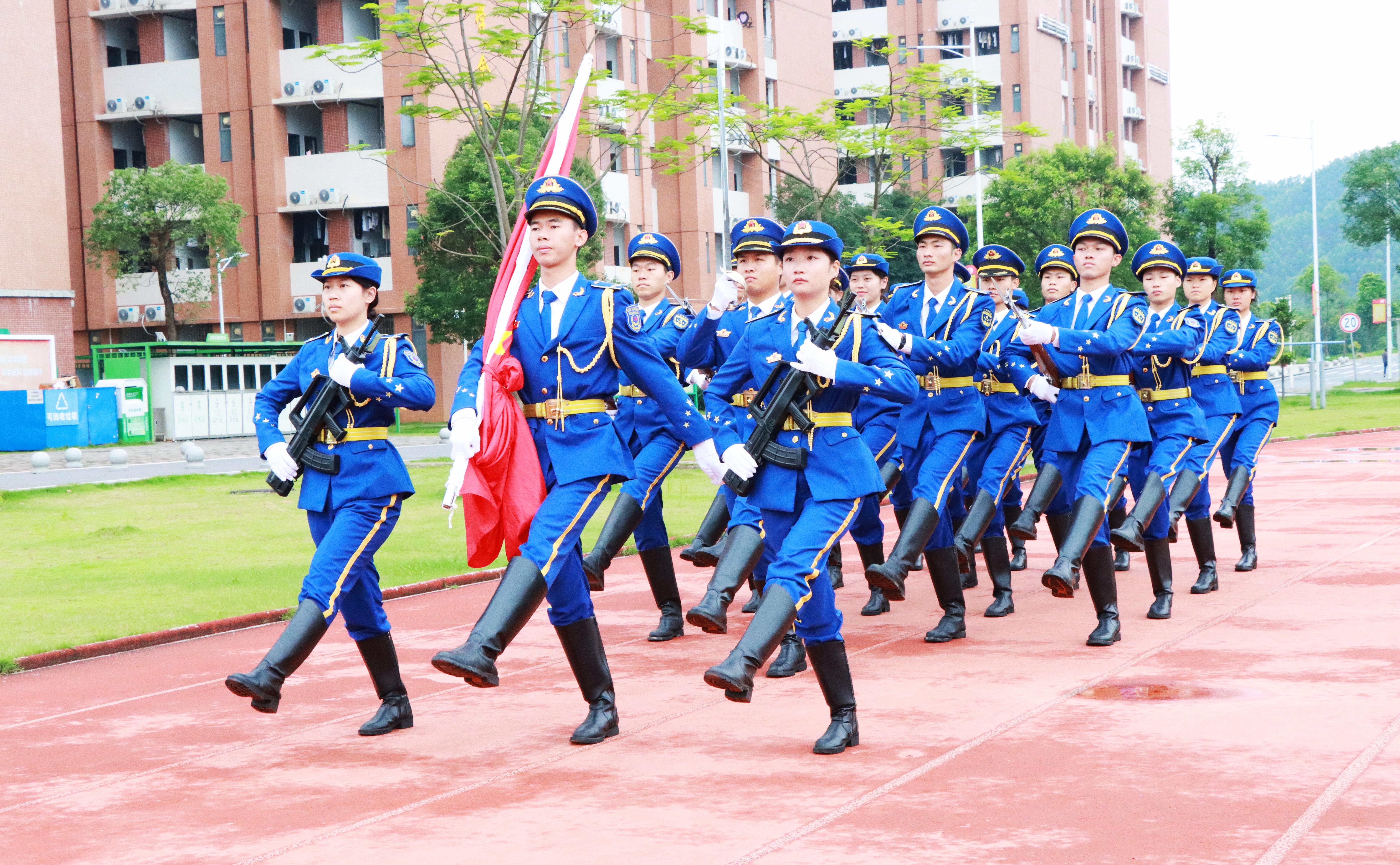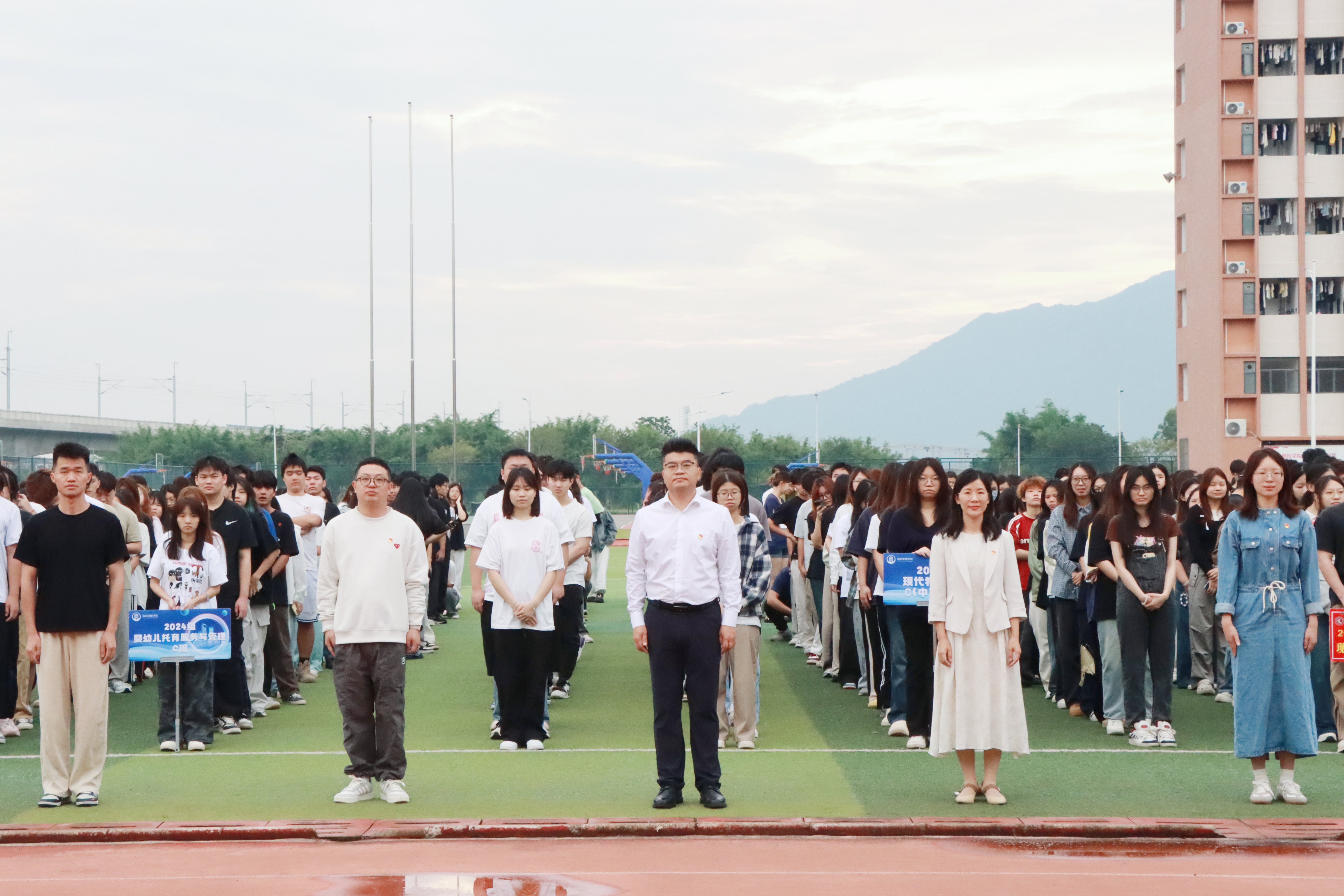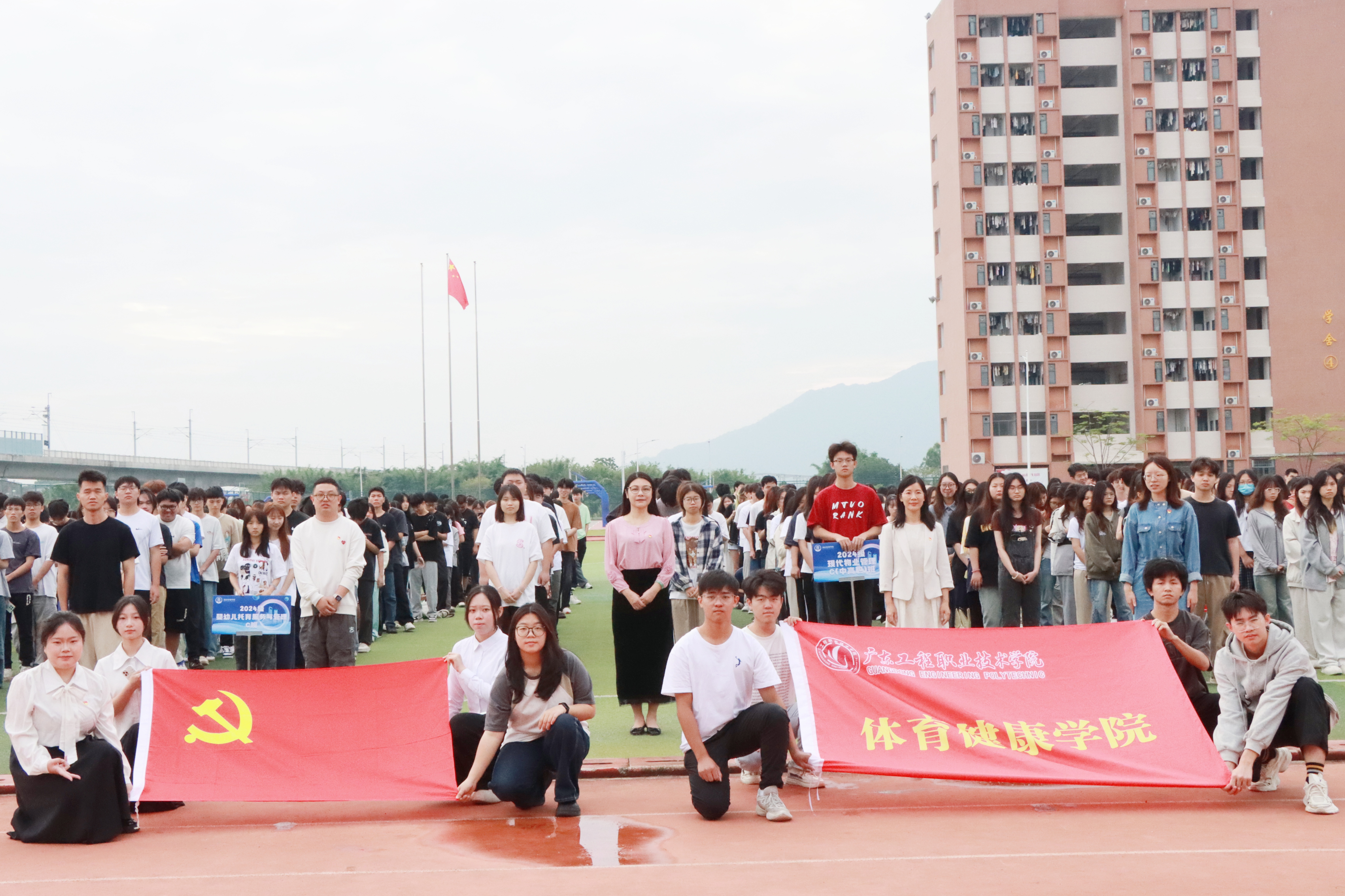 5月26日早晨,体育健康学院在清远校区田径场举行升国旗仪式,学院党委书记邱志远、院长周琳、副书记卢沛刁以及体育健康学院全体辅导员和同学们共800余人参加。