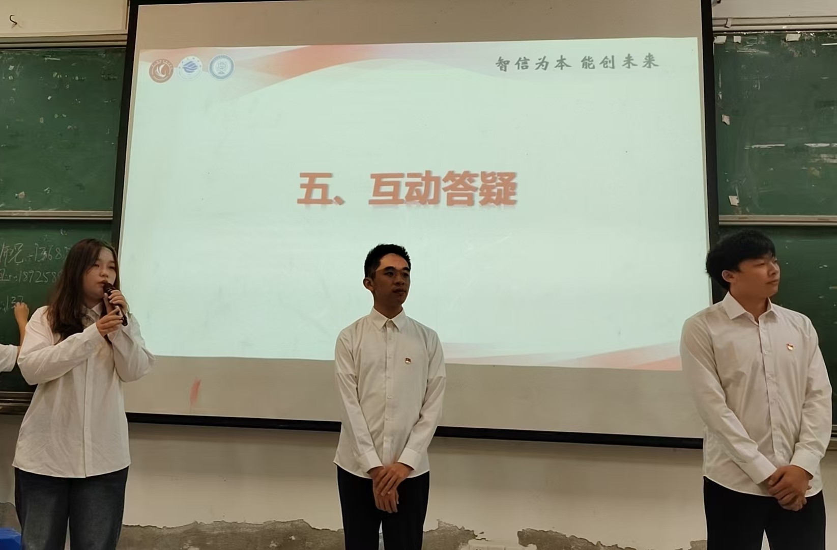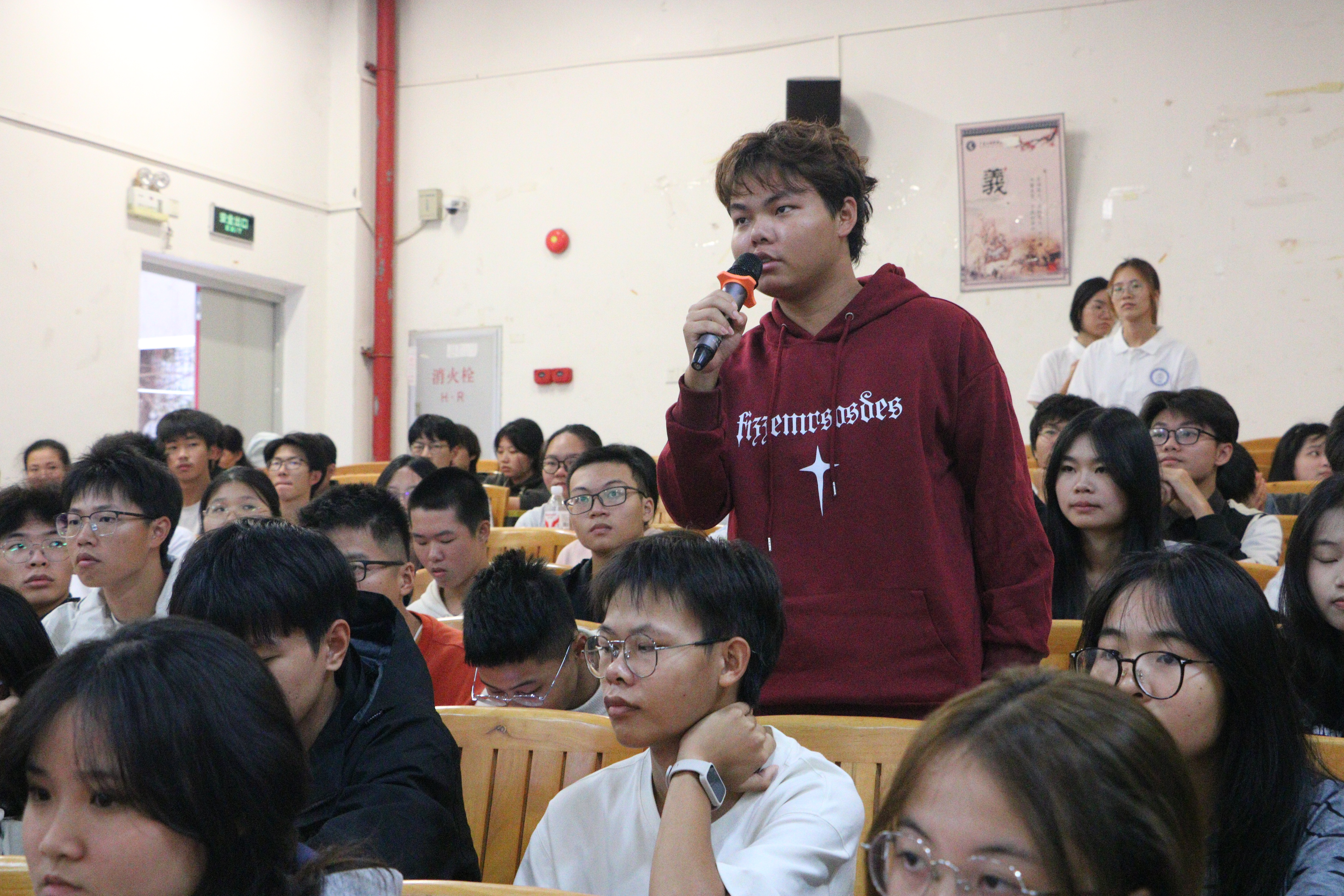 榜样分享后,互动答疑环节开启。学生围绕 “如何向榜样看齐”“成长规划”“专业与实践平衡” 等问题踊跃提问,三位榜样结合经验耐心解答,让榜样力量从 “单向传递” 变为 “双向互动”,为更多学生照亮成长思路。