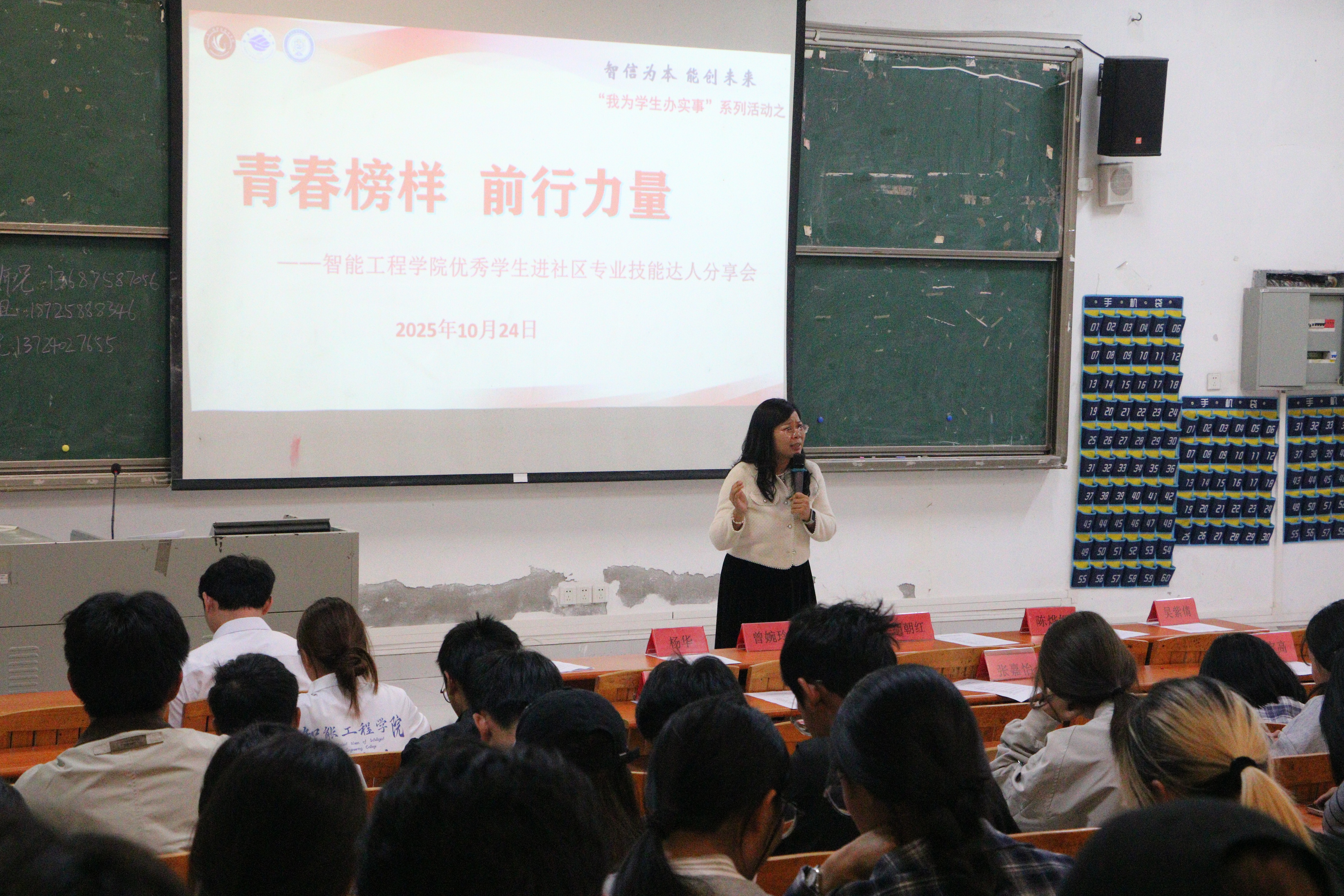 金秋送爽,硕果盈枝,在这满载收获与希冀的时节,10月24日,智能工程学院学生会在实训楼5-101教室成功举办“我为学生办实事”系列活动之优秀学生进社区专业技能达人分享会,近200人参加,受到师生一致好评。从领导的殷切嘱托到干货满满的实践分享,活动不仅为学生们明晰了大学成长的方向,更以身边榜样为引,注入奋进动能,助力大家在专业学习与综合发展之路上坚定前行。
