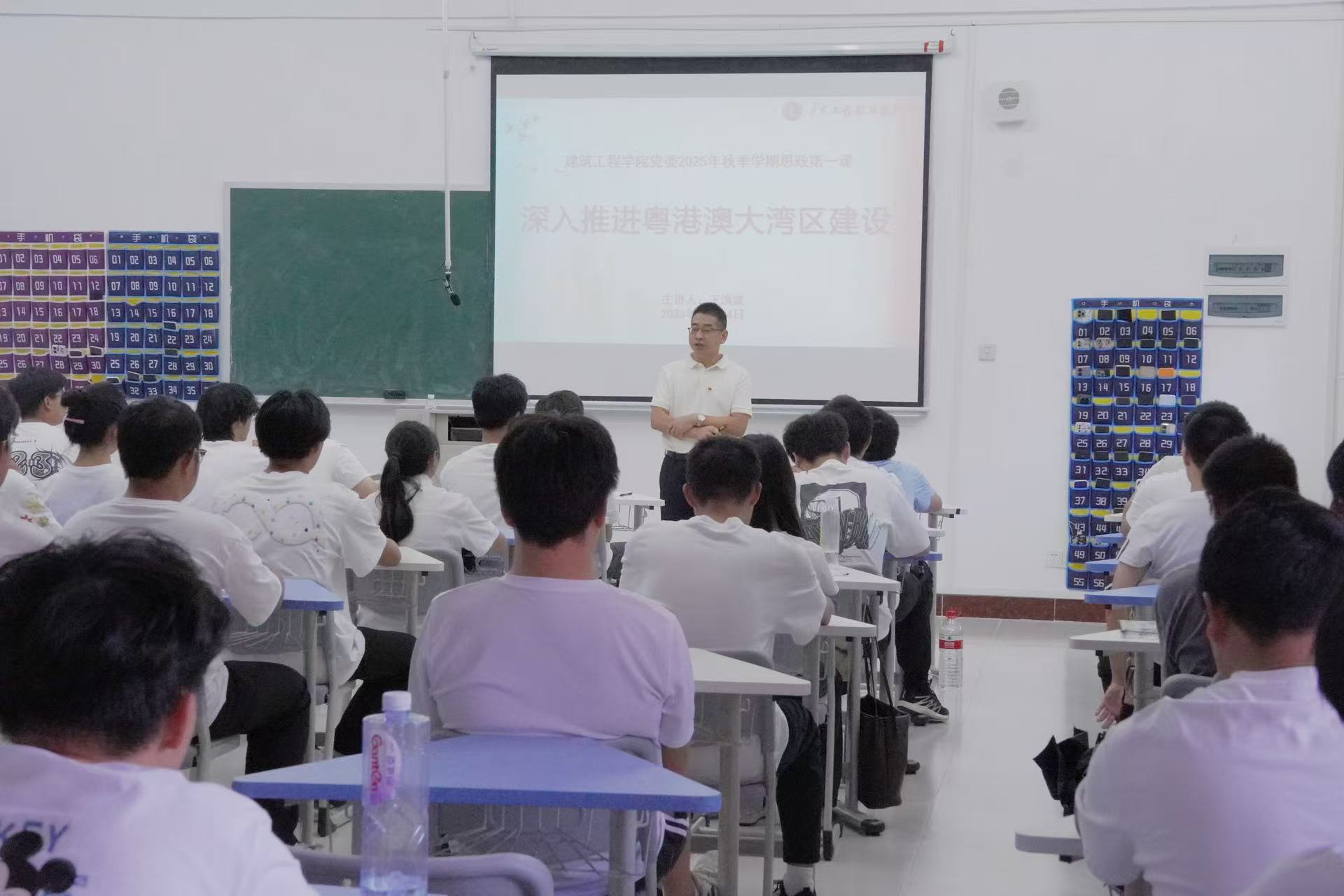 王洪波以“深入推进粤港澳大湾区建设”为主题,深入剖析了粤港澳大湾区在“一国两制三关税区”背景下的独特优势与发展基础,全面解读了习近平总书记关于大湾区建设的重要战略部署。他通过列举东莞散裂中子源、港珠澳大桥、鸭涌河治理等重大工程与民生项目,生动展示了湾区在科技创新、基础设施互联互通及优质生活圈建设等方面取得的卓越成就。结合建筑行业从CAD到BIM的技术变革与自主软件研发趋势,王洪波激励同学们要立足专业、放眼未来,主动把握国家重大战略机遇,不断提升技术素养与创新能力,为服务区域经济社会高质量发展贡献智慧与力量。