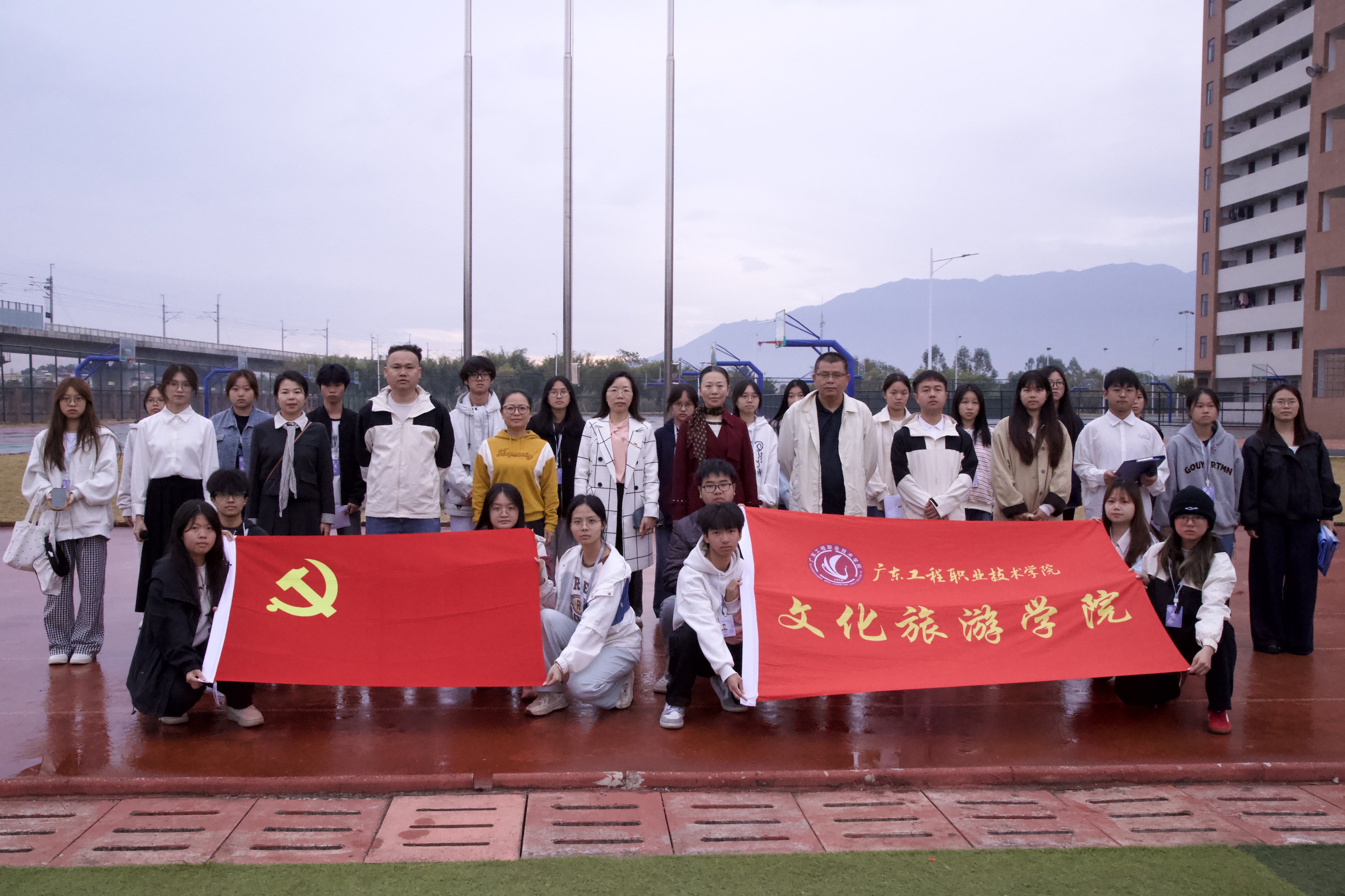 为深入贯彻落实党的二十届四中全会精神“建设文化强国、旅游强国”部署要求,以红色基因铸魂育人,文化旅游学院于2025年12月1日7:20在田径运动场举行爱国主义教育主题升旗仪式。学院党委书记桂爱民、副书记罗汉红、副院长陈国雄、副院长伍燕青、全体辅导员与2024级、2025级全体同学齐聚操场,在庄严肃穆的升旗仪式中凝聚文旅报国共识,践行全会精神使命!