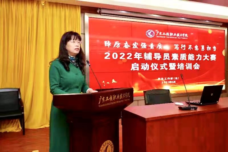 3月3日下午,辅导员素质能力大赛启动仪式暨培训会在广州校区图书馆报告厅举行,特邀广州科技职业技术大学党委书记、华南理工大学硕士研究生导师冯小宁作专题培训。学校党委副书记方燕出席并动员讲话,各学院党总支书记、副书记,全体辅导员,学生工作部全体成员参加会议,会议由学生工作部部长黄馥丽主持。