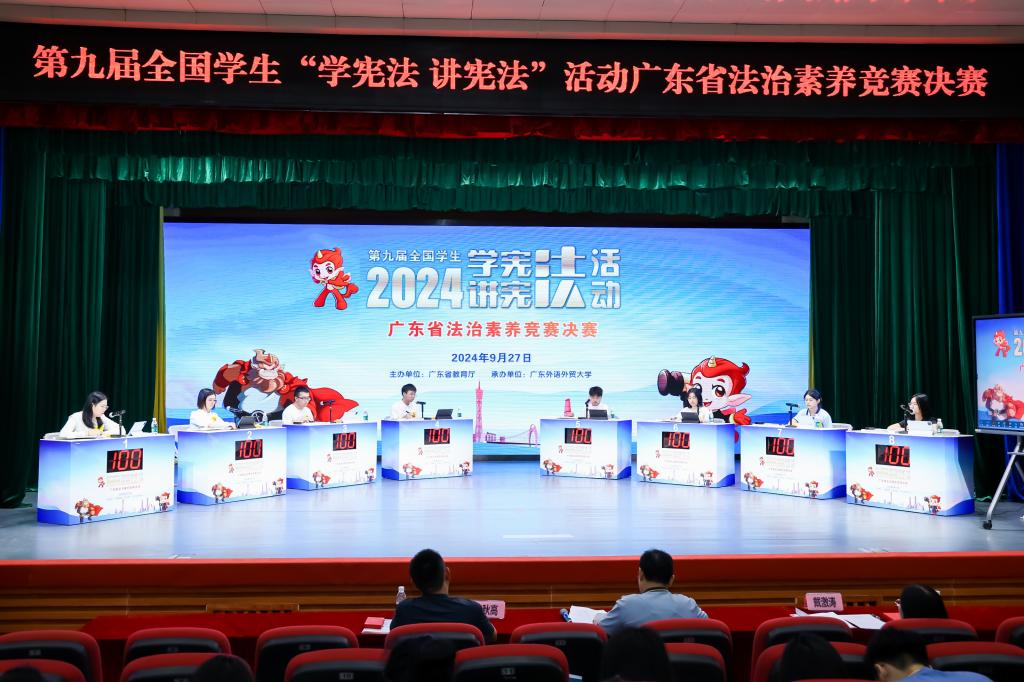 据悉,9月23日-27日,由广东省教育厅主办、广东外语外贸大学承办的第九届全国学生“学宪法 讲宪法”活动广东省决赛暨粤港澳大湾区青少年法治演讲比赛和素养竞赛在广东外语外贸大学白云山校区举行。活动共分为演讲比赛和素养竞赛两个部分。9月24日是高校组的演讲比赛,选手们以宪法为魂、以成长为线,用真挚而富有感染力的语言,讲述着粤港澳大湾区一个个鲜活的宪法故事,展现出当代青少年对宪法和中国特色社会主义法治的坚定信仰与崇高追求。9月27日是法治素养竞赛的现场竞答环节,成绩优异者将晋级全国赛的角逐。(马克思主义学院 杨英供稿, 柏欣校对, 郭华生审核)