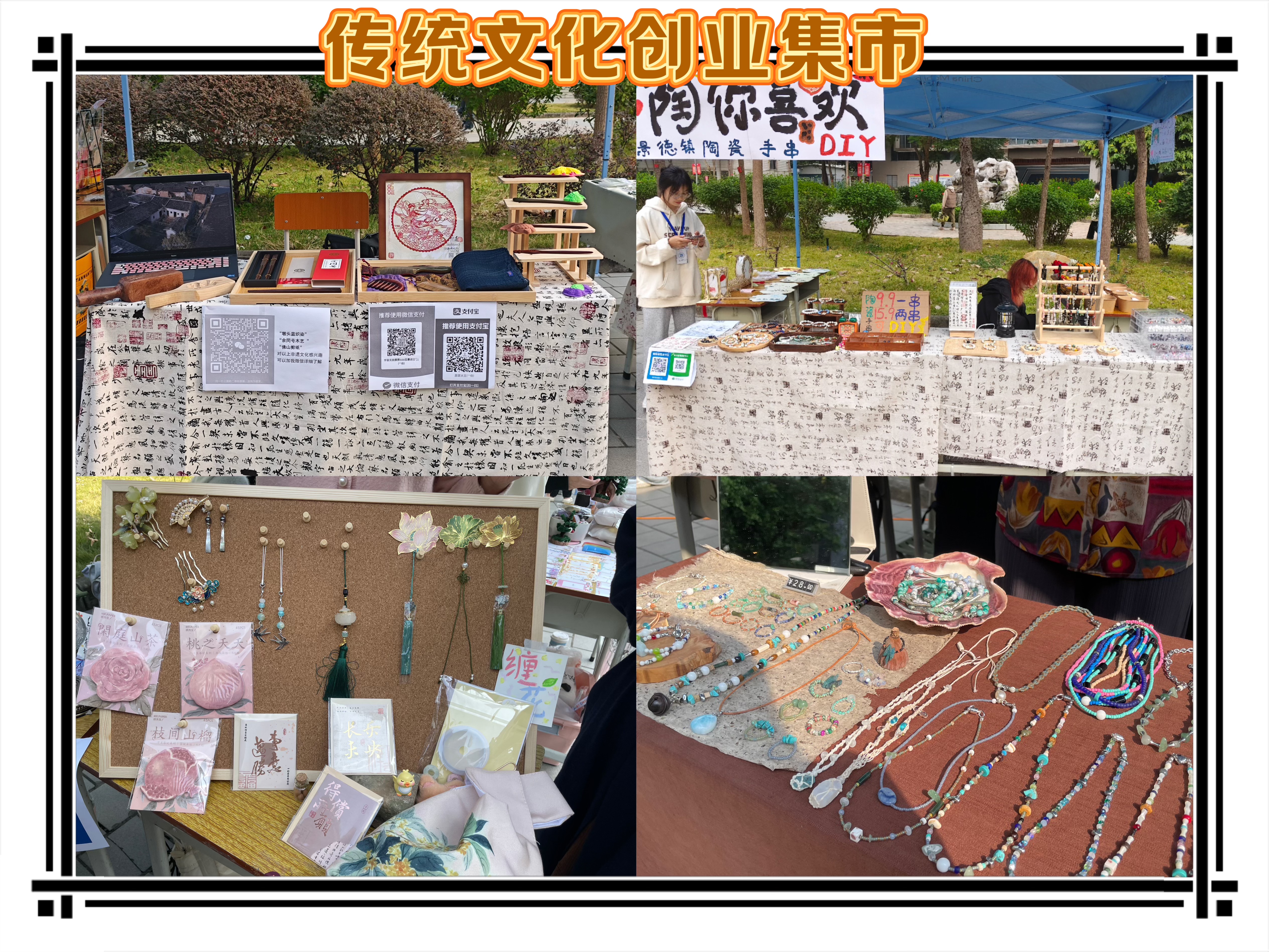 中华优秀传统文化“双创”融合。为全面深化创新创业教育改革,营造校园大众创业万众创新的良好氛围,培养更多具有创业精神和实践能力的优秀人才,本次“传统文化展示周”还在广州校区还开设“传统文化创业集市”,吸引了17组创业者,成交量达414单,打造了具有传统文化特色的产品和服务。此次活动激励着每一个有梦想的创业者去探索属于自己的创业之路,让传统文化在现代社会中焕发新生。
