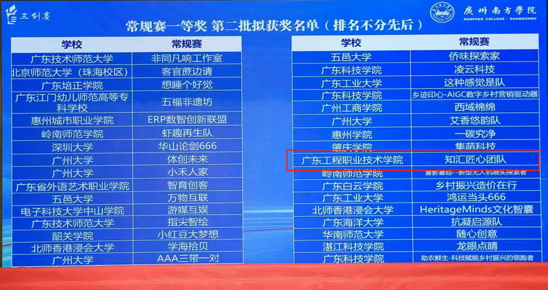 由何杰文等老师指导的财经商贸学院参赛项目《知汇匠心》荣获省赛常规赛一等奖