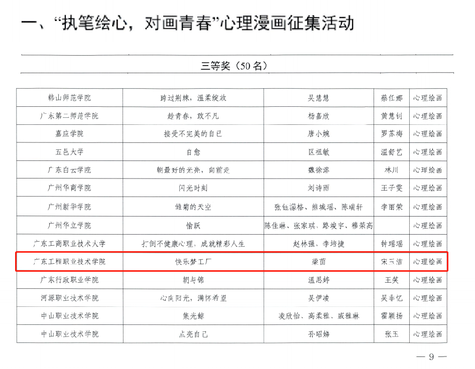 在 “执笔绘心,对话青春”心理漫画征集活动中,宋玉洁老师指导的梁茵同学原创心理绘画作品《快乐梦工厂》获得三等奖。