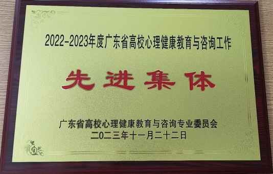 大会表彰了广东省高校心理健康教育与咨询工作先进集体、广东省高校优秀心理中心主任、先进个人、优秀论文及出版物。经过严格评选,我校被授予“2022-2023年度广东省高校心理健康教育与咨询工作先进集体”荣誉称号;这是我校首次获此殊荣,标志着我校心理健康教育工作的规范专业水平得到业内专家的一致肯定。