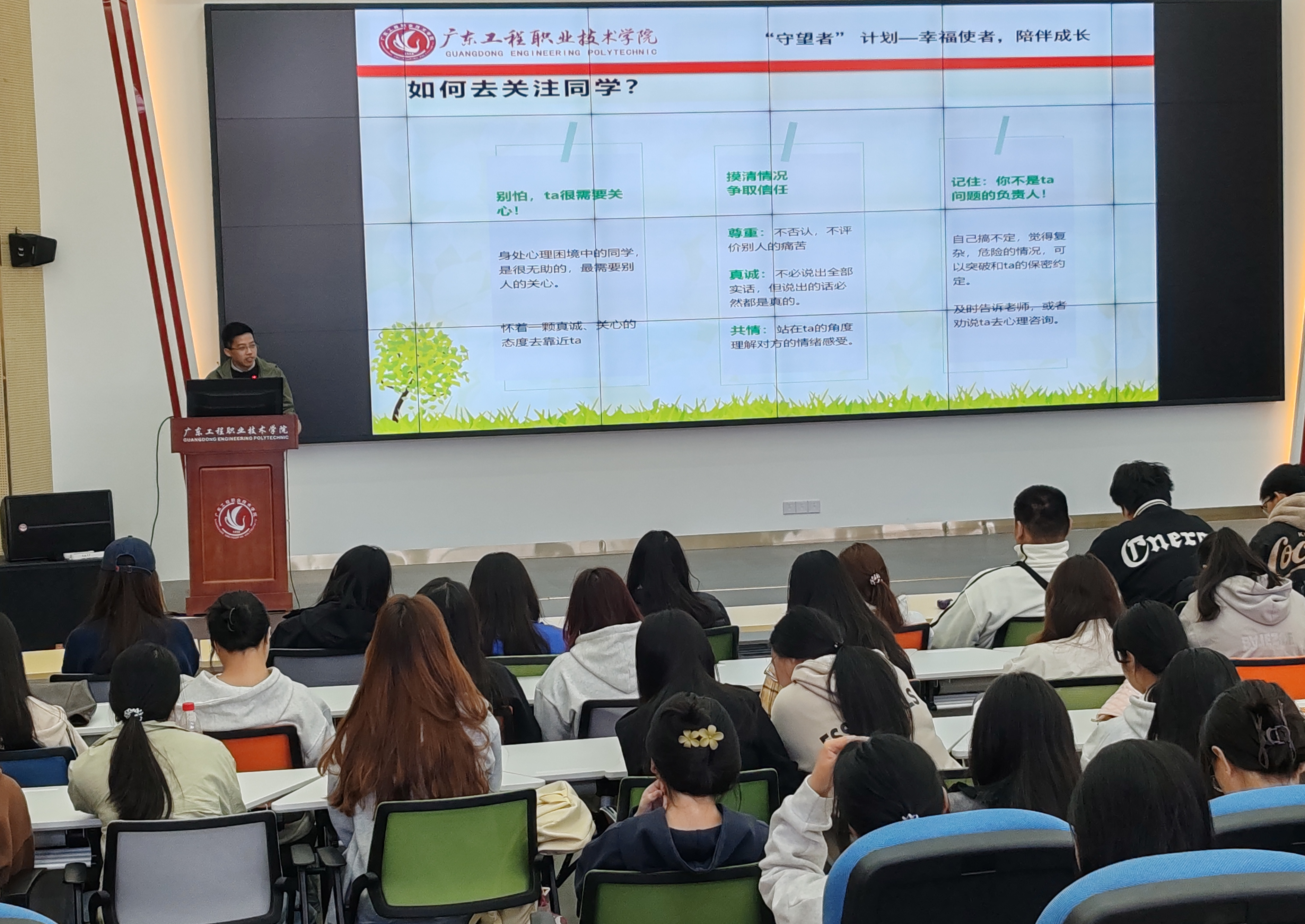 为贯彻落实教育部关于学生心理健康教育的指导精神,推进学校心理健康教育工作,夯实“学校—学院—班级—宿舍”四级预警网络,充分发挥班级心理委员、宿舍长等朋辈队伍的“哨兵”和朋辈助人的作用。2024年11月,学生工作部大学生心理健康辅导中心举办“守望者计划”第三期专题培训,本次参训人员包含2023级和2024级心理委员、宿舍长及阳光心理健康服务队成员,共计1900余人。