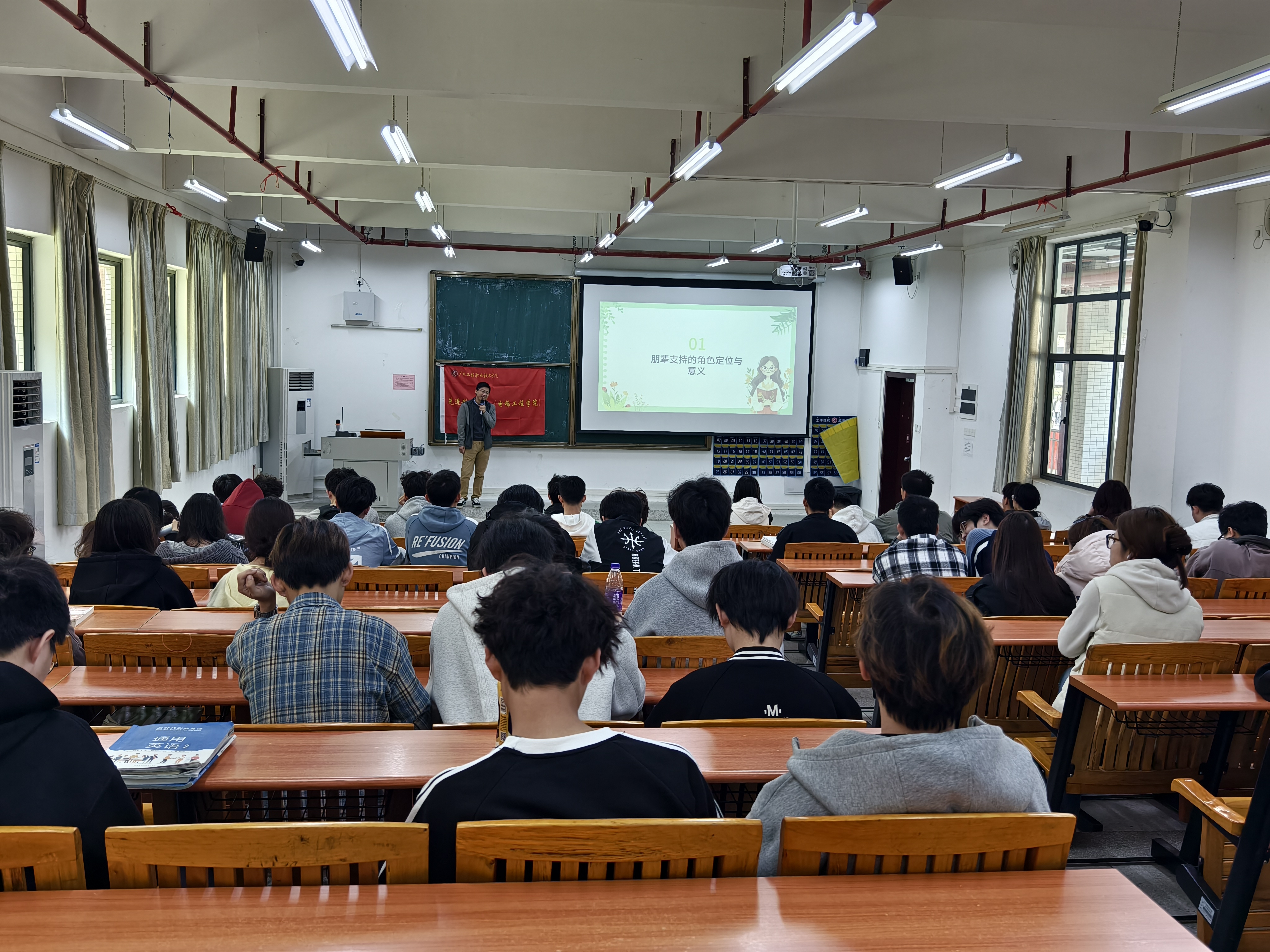 培训聚焦“大学生常见心理问题的识别与应对”及“心理主题班会的策划与组织实施”两大主题,通过“系统化授课+实战化演练”的赋能模式,全面夯实学生心理骨干的专业技能。在常见心理问题识别与应对培训中,心理中心老师通过案例分析与理论讲解,介绍焦虑、抑郁等心理问题的外在表现及识别技巧,分享“倾听-共情-转介”的朋辈支持原则,强调"工作边界及自我关怀"的重要性,现场通过“角色扮演+情景再现”的实战演练模式,有效提升朋辈心理支持的实操胜任力。