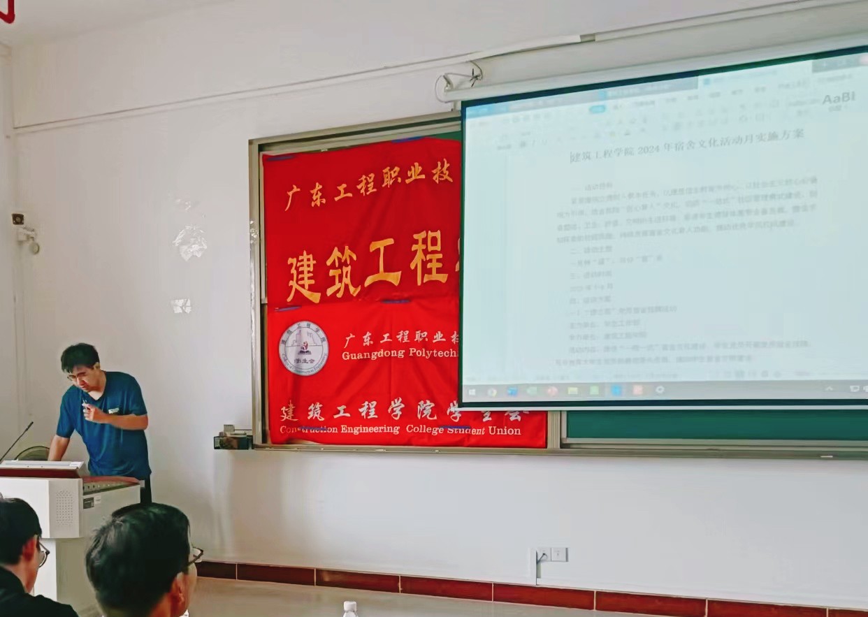 王泽老师对学院2023-2024学年第二学期宿舍文化活动月实施方案进行讲解。根据方案,5-6月学院将开展形式多样、内容丰富的宿舍文化建设活动,旨在进一步打造大学生 “一站式”学生文化社区,丰富大学生校园文化生活,提高其综合素养。