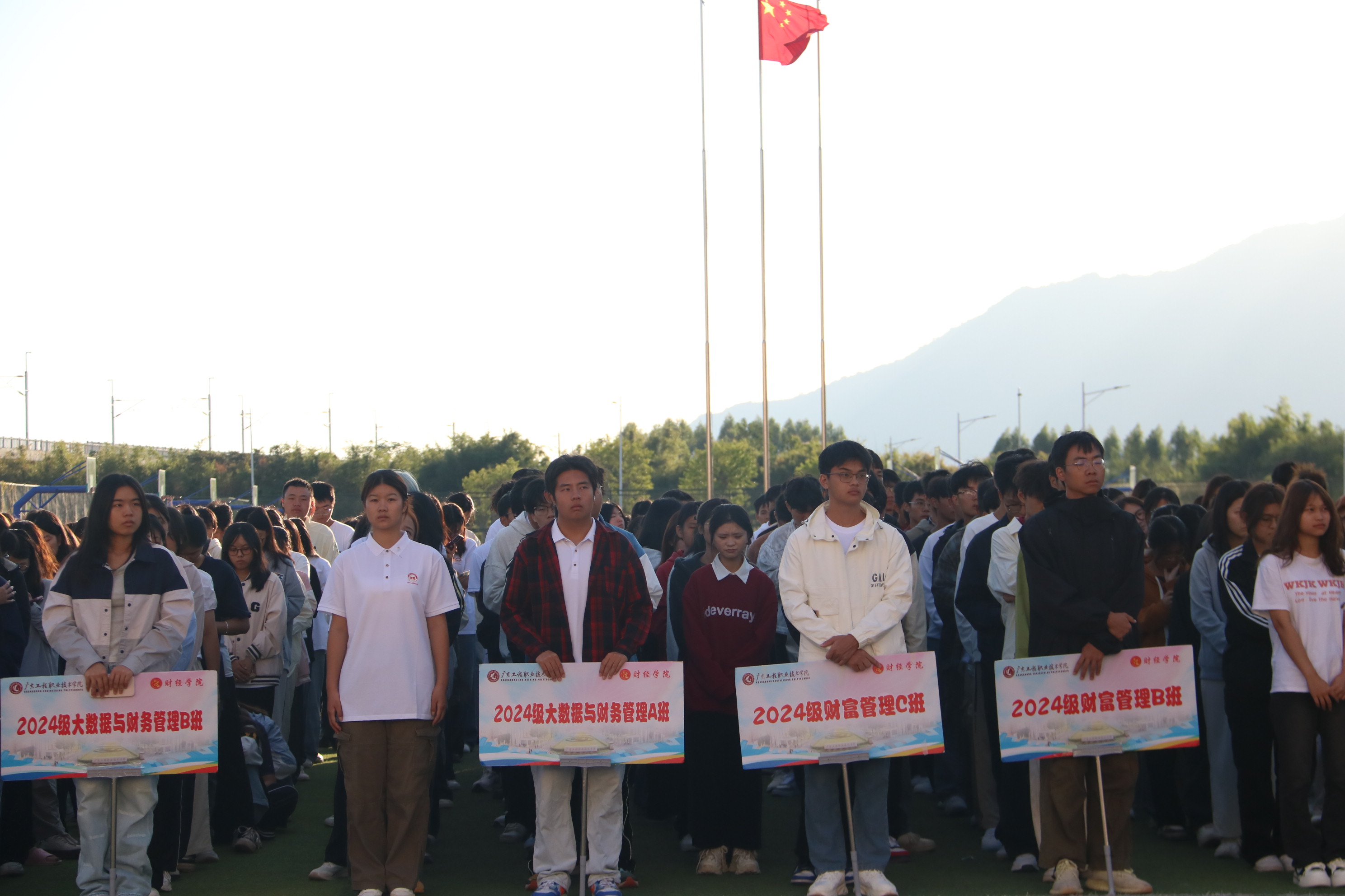 2023级大数据与财务管理B班蓝子君同学在升旗仪式后进行了国旗下讲话。她回顾了新中国成立 75 年来,在中国共产党的坚强领导下,国家在经济、科技、文化等各个领域取得的举世瞩目的成就,强调了青少年在国家发展进程中的责任与使命。她在讲话中分享了拥有良好学习态度和优秀学风的重要性,并号召同学们树立正确学习目标,持有良好学习态度,珍惜时光,持之以恒,坚持不懈为美好未来奋斗。