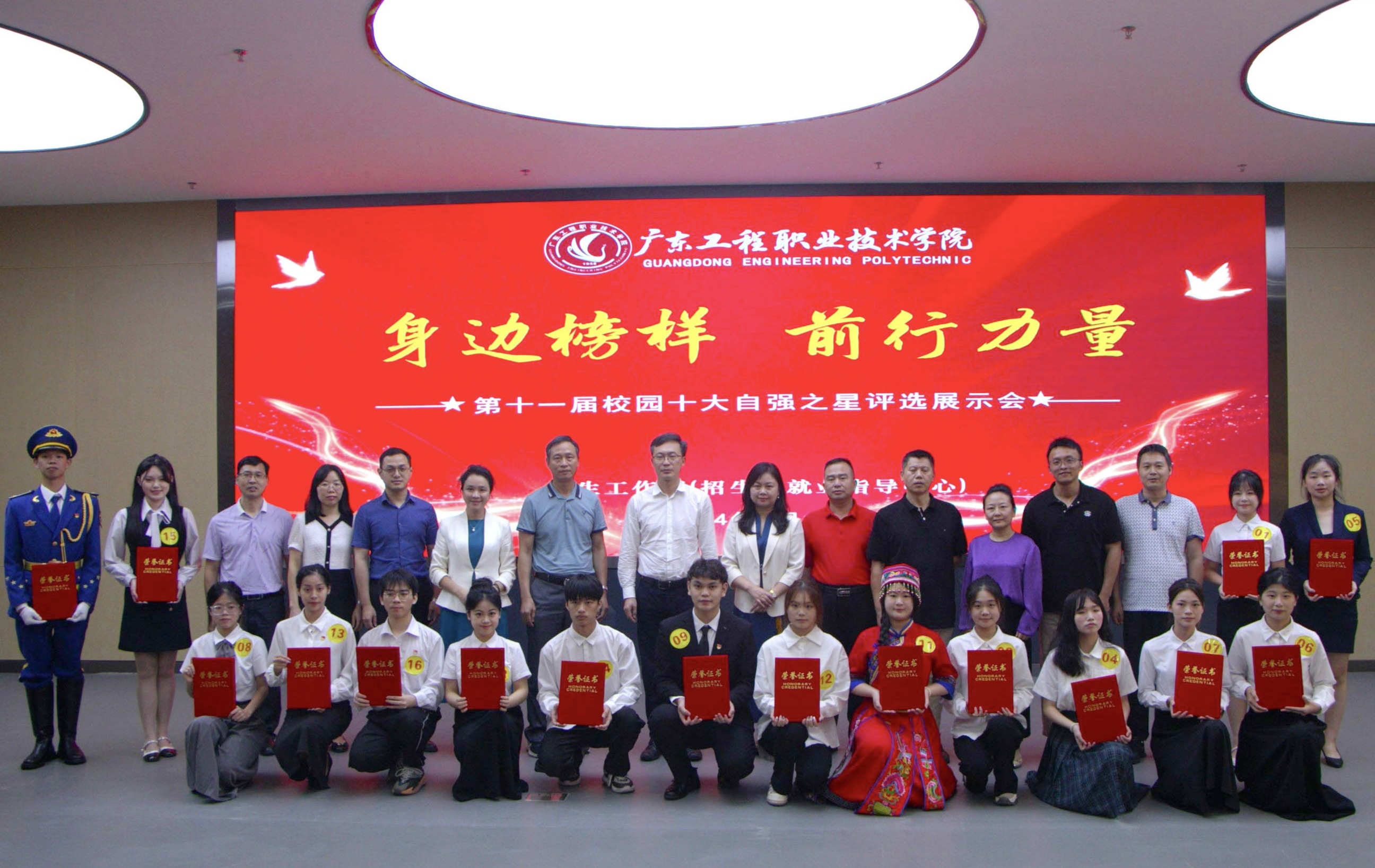 青春当自强,励志绽芳华。6月6日下午,学校第十一届校园“十大自强之星”评选展示会在清远校区报告厅举行。学校党委委员、副校长张小广出席活动并讲话,各二级学院党委书记、副书记,助学辅导员老师和学生代表参加现场活动。学生工作部(招生与就业指导中心)部长黄馥丽、工会专职副主席钟向忠等5位职能部门中层干部担任评委。
