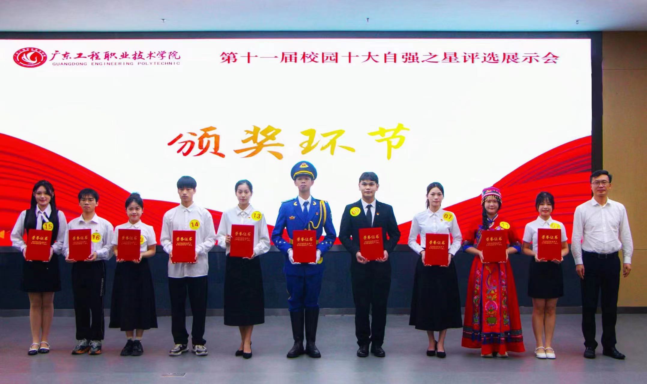 本次自强之星评选历时一个月,经过个人申报、学院推荐、网络投票及现场评委打分,人工智能学院梁庆瑞等10名同学获得本届“校园十大自强之星”荣誉称号。张小广副校长为“校园十大自强之星”颁奖,黄馥丽部长和钟向忠专职副主席为6名“自强之星提名奖”颁奖。