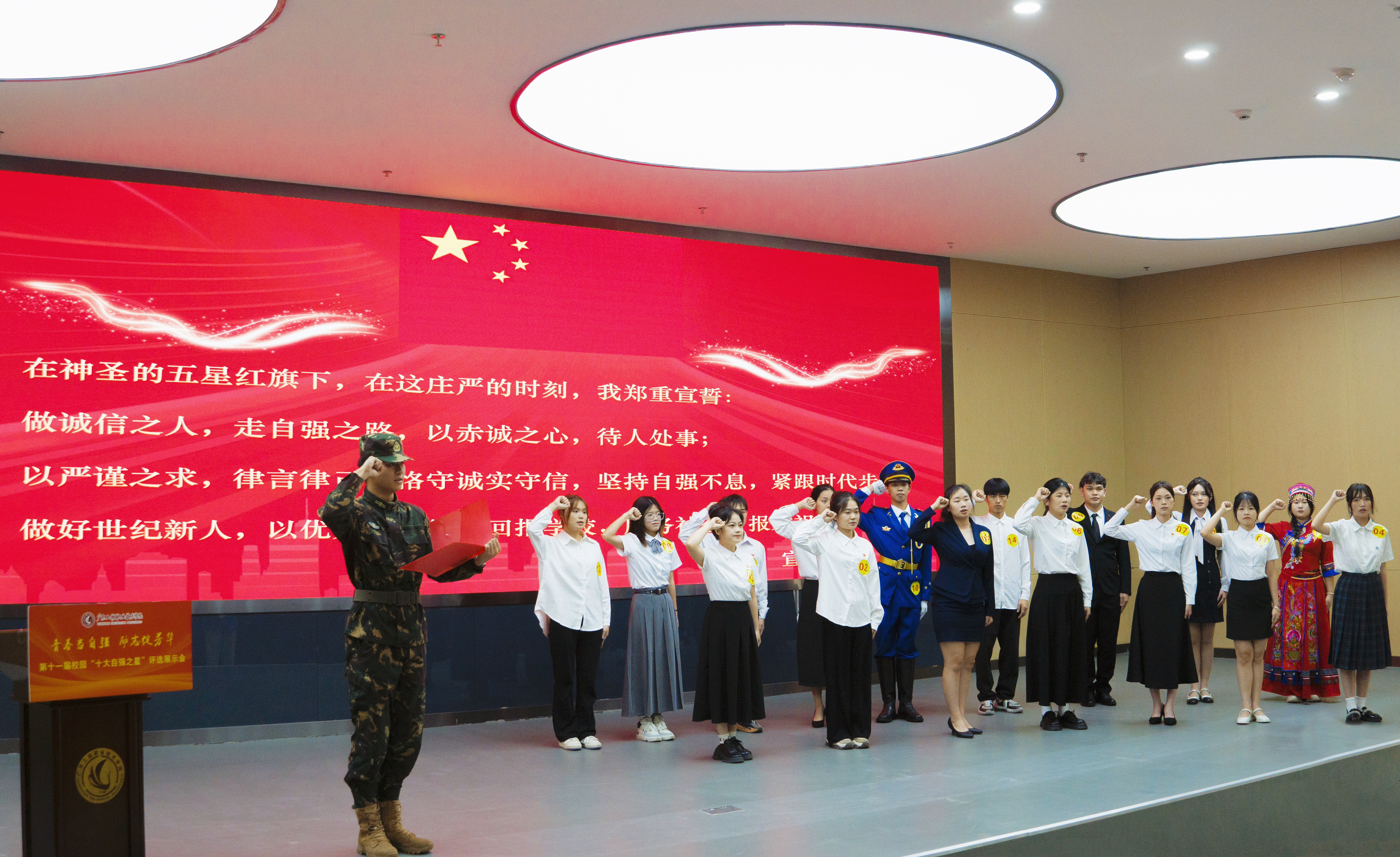 张小广副校长指出,学校高度重视资助育人工作,切实做好“保民生、暖民心”工程,让有理想的青年都有追求进步的保障。“十大自强之星”评选活动,同学们用努力奋斗获得的优异的成绩证明了自己过硬的实力和充盈的内心。他勉励学子们:一是要坚定理想信念。始终要把爱国主义作为始终高扬的光辉旗帜,努力成长为中国特色社会主义的合格建设者和可靠接班人;二是要锤炼过硬本领。厚植家国情怀,让个人理想与国家发展同频共振,以理想之光照亮前行之路,与人民同心、与国家同向、与时代同行;三是要勇于担当作为。树立成才报国的宏伟之志,以校歌中“筑梦同行,求真厚德;志存高远,为家为国”的情怀,不忘初心,超越自我,勇于担当时代责任,为学校“双高”建设高质量发展助力,把自己奋斗的青春梦融入中华民族伟大复兴的中国梦。