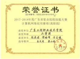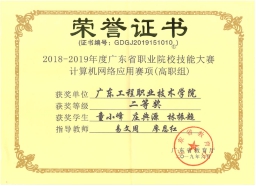 广东省职业院校技能大赛计算机网络应用赛项(高职组)省级二等奖 |