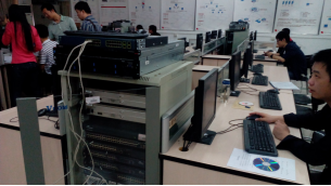 2010年与西安开元共建的综合布线实训室,拥有丰富的网络综合布线器材和工具,满足本专业学生的综合布线实际操作,使理论和实际得到有效结合,有效提升不生的操作能力和职业水准。