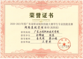 广东省职业院校技能大赛学生专业技能竞赛网络系统管理赛项(高职组)省级二等奖 |