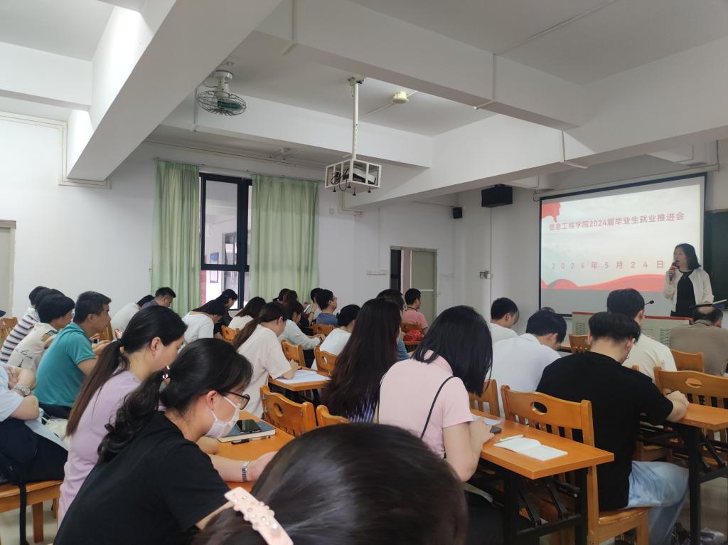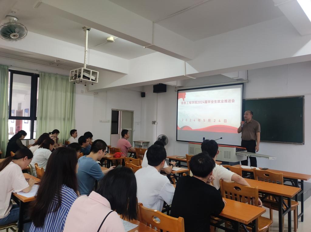 为进一步贯彻就业政策,扎实做好2024届毕业生就业工作,提升就业工作质效,2024年5月24日下午,信息工程学院在科技楼302组织召开2024届毕业生就业推进会,学院党委书记桂爱民、院长利业鞑、学院党委副书记艾华武、顶岗实习指导老师、毕业班辅导员以及毕业班班主任参加了会议,会议由艾华武副书记主持。