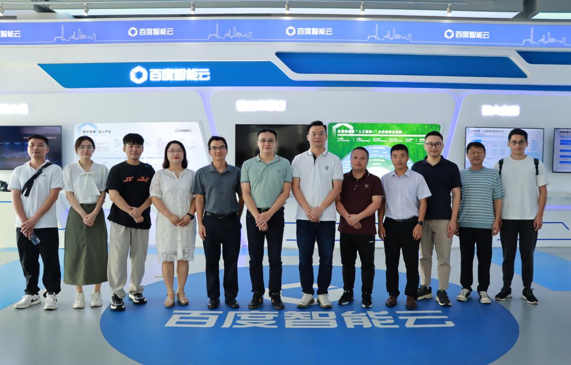 在图灵智新总经理林绵峰的陪同下,学院领导一行首先参观了百度展厅,通过讲解员的介绍,了解百度在大语言模型服务平台、智慧政务、智慧金融及自动驾驶等方面的最新布局。通过广州黄埔区车城网中枢系统的实景案例,直观了解到科技力量如何助力城市交通管理提效降本。