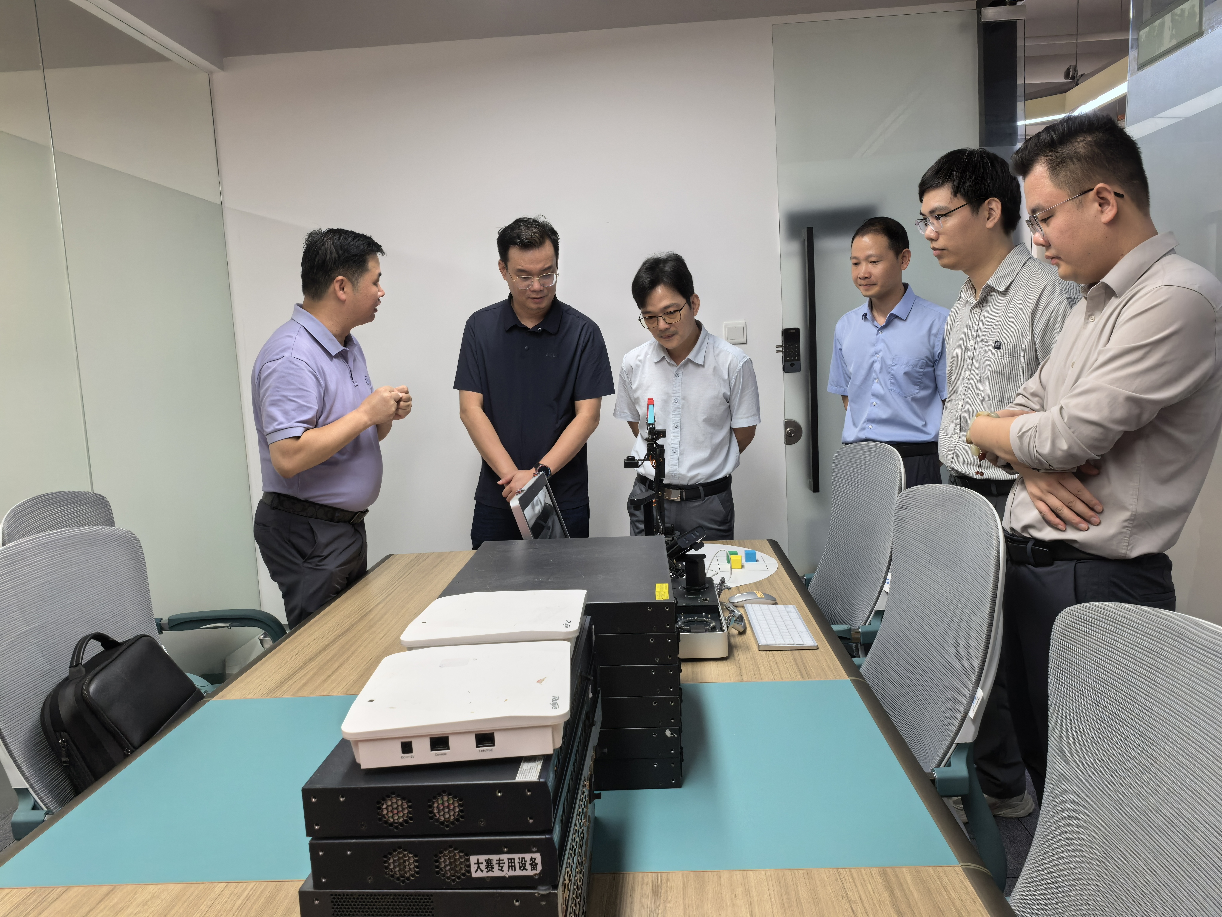 随后,校企座谈会在广州视源电子会议室举行。中锐网络、广州视源电子分别介绍产业布局、技术优势及产教融合案例,重点分享 “产学研用一体化”平台建设、项目合作、实习实训等提升学生实践能力的具体举措。研讨环节,双方聚焦 “智慧场景协同交付产教融合实践中心”建设方案深入交流,围绕 “新双高”背景下人才培养模式改革、校企合作机制创新、微专业建设等关键议题达成共识。