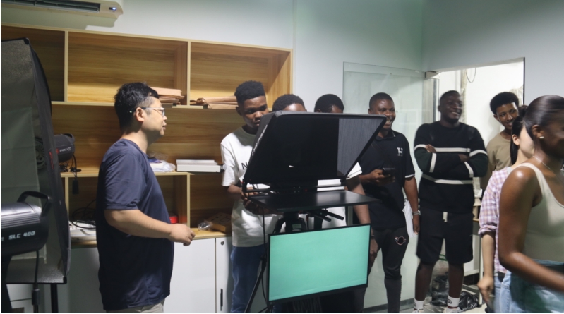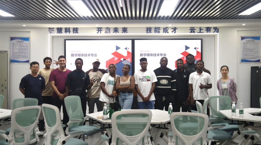 7月5日,信息工程学院与国际学院共同举办了一场新一代信息技术交流活动。在此次活动中,信息工程学院教师带领外国留学生参观了我校全矩阵数字内容制作工坊、新一代数字工坊和5G基站综合实训室等实训场所。留学生现场体验了数字影棚录制操控,气氛热烈。