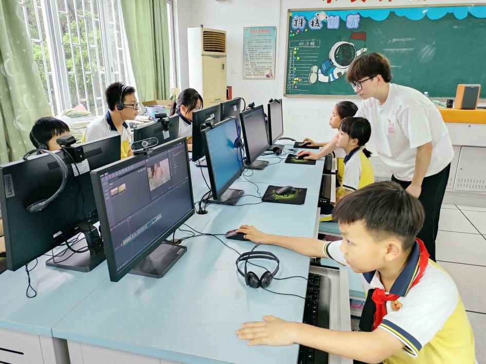 自3月份以来,为推动校际党建共建与科技教育深度融合,智能工程学院学生第一党支部与渔沙坦小学开展为期两个月的“大手拉小手”兴趣班宣讲活动,为小学生们带来了一场生动的人工智能与剪辑启蒙课。活动中,学生党员走进渔沙坦小学课堂,通过趣味讲解和互动演示,向孩子们科普人工智能的基础知识,并带领他们体验简单的编程游戏。在学生党员的耐心指导下,小学生们动手体验小程序,亲身感受科技的魅力。