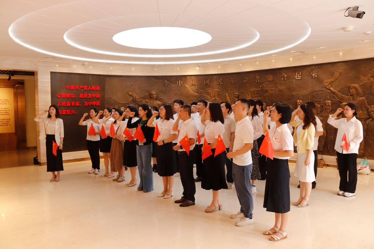 在庄严肃穆的纪念馆内,吴丽清同志带领全体党员面向党旗重温入党誓词。“我志愿加入中国共产党……”铿锵誓言在红砖老建筑间回荡,每一句誓言都饱含着党员们对党的无限忠诚和为共产主义事业奋斗终身的坚定决心。通过重温入党誓词,党员们进一步强化了党员意识,铭记了初心使命;全体党员教师以饱满激情回溯初心,强化“为党育人、为国育才”的使命担当。