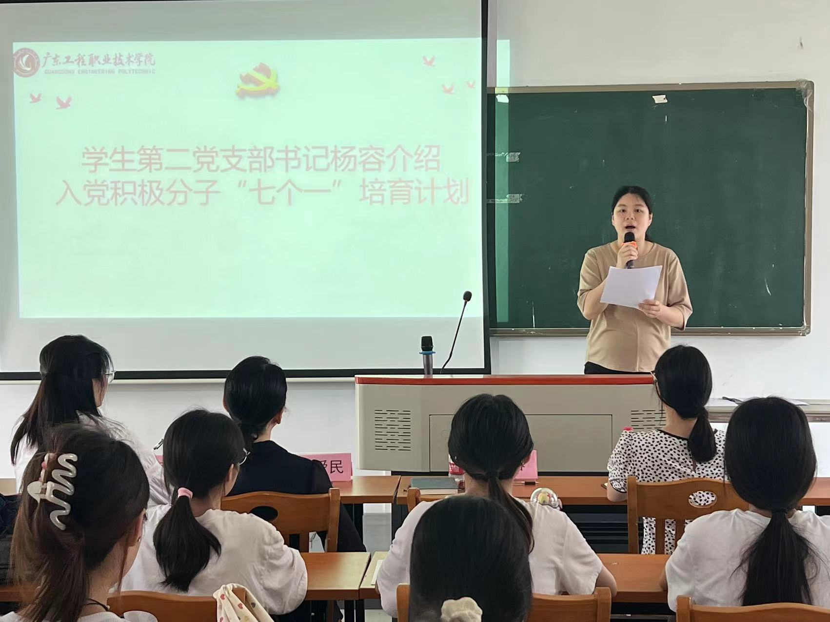会上,江飞凤老师介绍了培训班的课程方案;学生第二党支部书记杨容同志介绍学院入党积极分子“七个一”培育计划。作为我院首创的入党积极分子培育计划,自2023年启动以来,获得全院师生广泛认可。“七个一”指在培育期间:至少担任一个学生干部、至少对接一个宿舍、至少帮助一位困难同学、每学期至少参与一次志愿活动、至少参加一次比赛、每月至少在易班发布学习心得一次、两个月至少向培养人汇报一次,并在成长手册上做好记录。该计划在促进学生全面发展的同时,也全面提升学员的综合素质与党性修养,有效促进每位积极分子在思想觉悟、社会实践、学习创新及服务意识等方面有所收获。