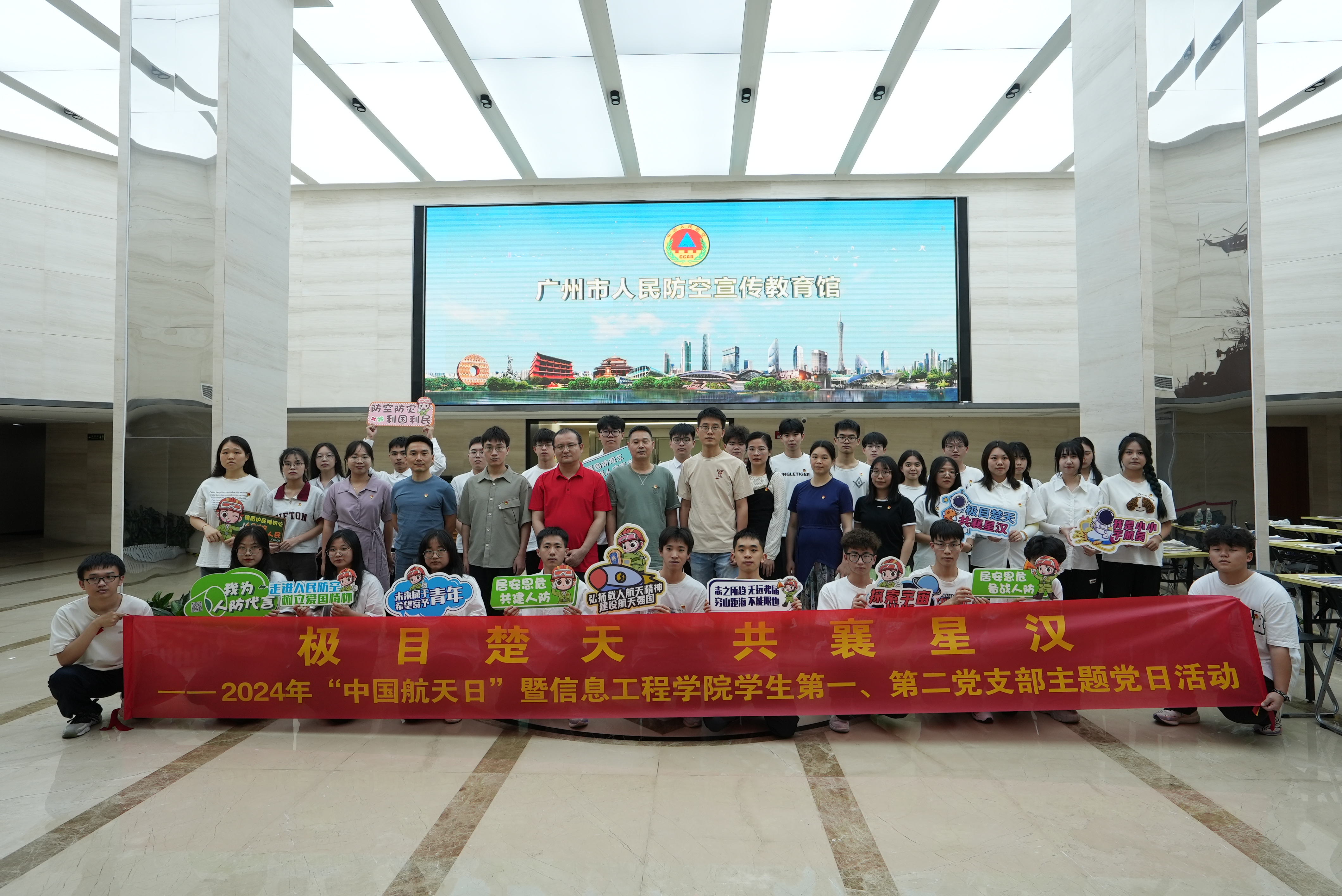 在第九个全民国家安全教育日来临之际,为学习宣传贯彻落实总体国家安全观,2024年4月17日下午,信息工程学院学生第一、第二党支部前往广州市人民防空宣传教育馆开展主题党日活动。参与本次活动的有信息工程学院党委副书记艾华武,学生第一党支部书记陈烨媚老师、学生第二党支部书记杨容老师以及支部教师党员和学生党员。
