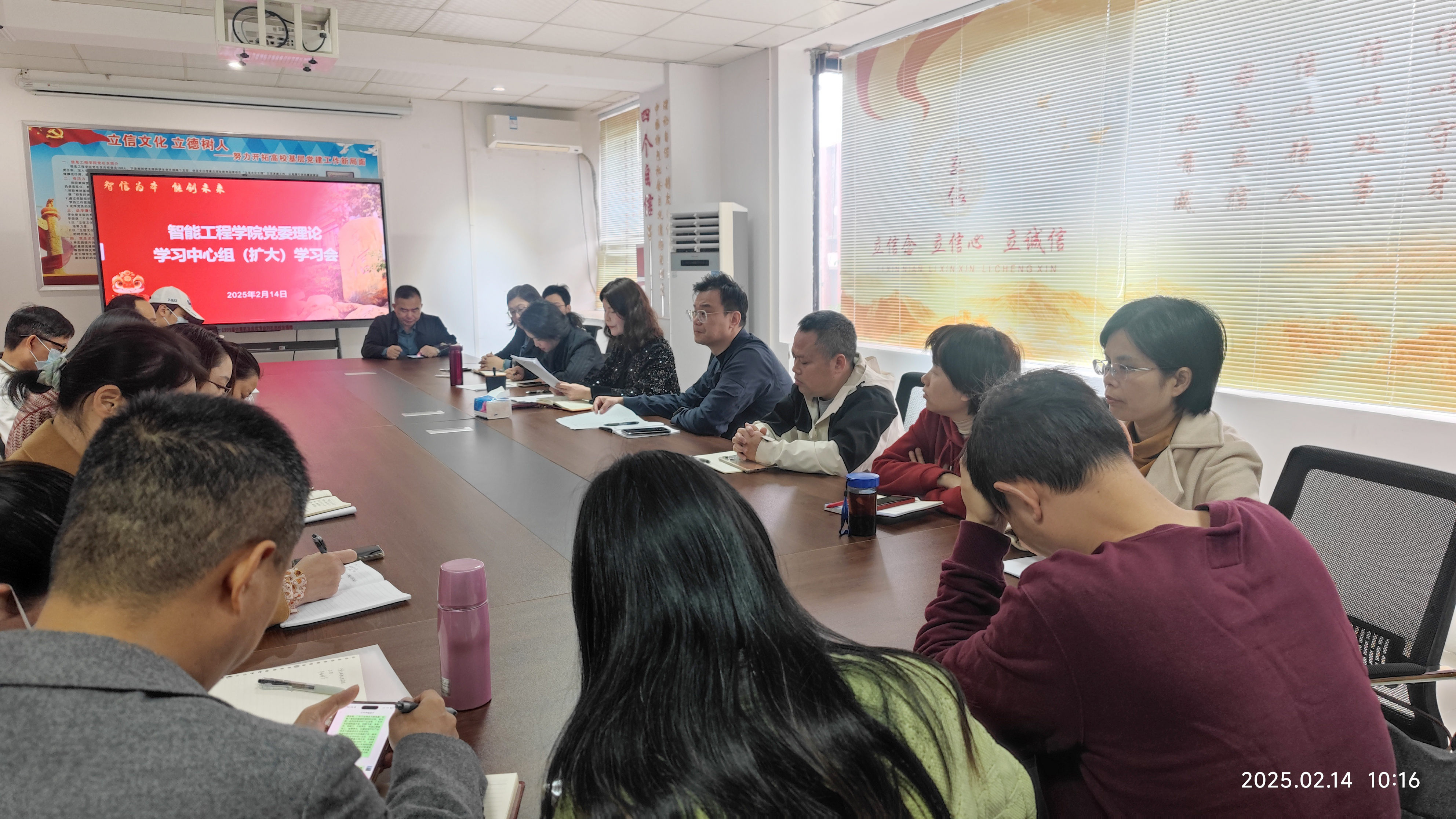 2月14日上午,智能工程学院召开党委理论学习中心组(扩大)学习会,专题学习贯彻全省高质量发展大会精神,并研讨部署学院新学期的工作任务。会议由学院党委书记吴丽清主持,学院全体班子成员、党支部书记、专业负责人、副高及以上职称教师等参加学习会。学院党委书记吴丽清、院长麦晓冬等班子成员谈了学习体会。学院党支部书记、专业负责人和教师代表做学习发言。