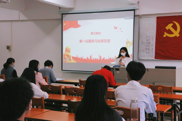 随后,由学生党支部三个小组的组长分别进行学习分享交流,宣传组的邱禧妮组长讲到在防控疫情这一方面,我们作为学生党员得主动站出来,成为战疫的“宣传员”和“战斗员”,做好防疫政策的宣传工作,将国家的防疫政策宣传到位,发挥学生党员的带头作用;发展组的邓芳婷组长认为学生党员们应当不忘初心,要牢记使命,带头做好疫情防控工作;组织策划组的黄汉琛组长表明要谨记时不我待的精神,抓实抓细疫情防控,积极参与学校的各项防控工作。