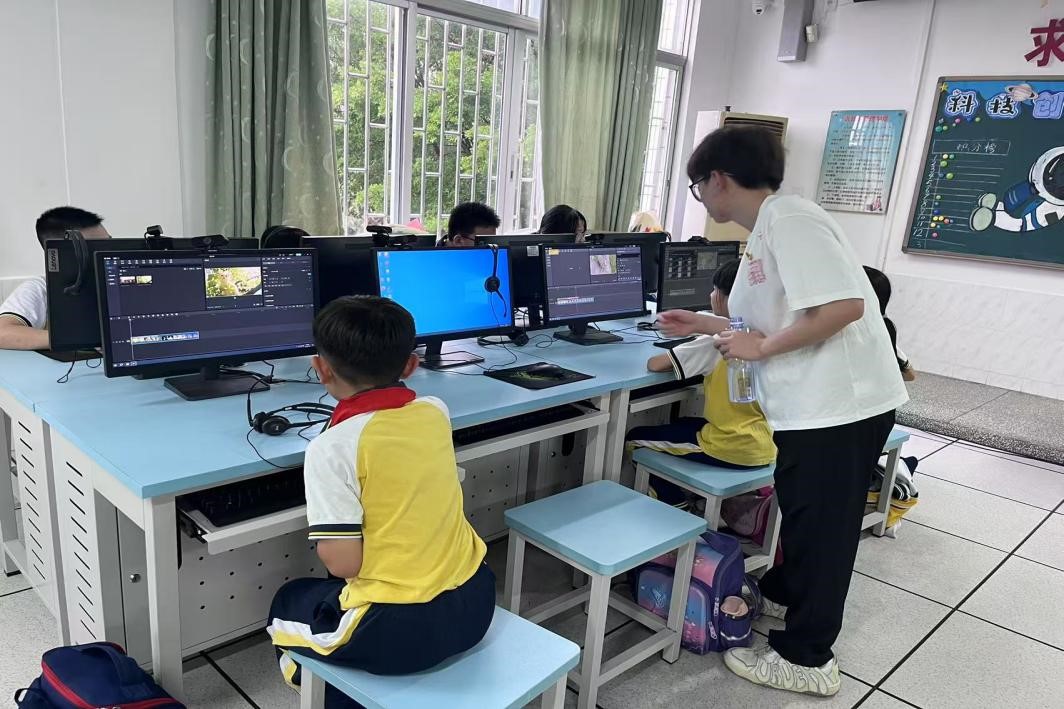 在剪辑兴趣班中,党员同志们从基础的剪辑软件操作教起,围绕“如何拼接图片”“添加简单字幕与背景音乐”等内容展开教学。考虑到小学生的认知特点,他们提前准备好卡通动画片段、校园活动照片等素材,让孩子们以“我的校园生活”“奇妙动物世界”为主题进行创作。课堂上,党员们一对一指导,手把手教孩子们调整画面顺序、修剪时长,当孩子们看到自己制作的小视频成功播放时,脸上洋溢着满满的成就感。