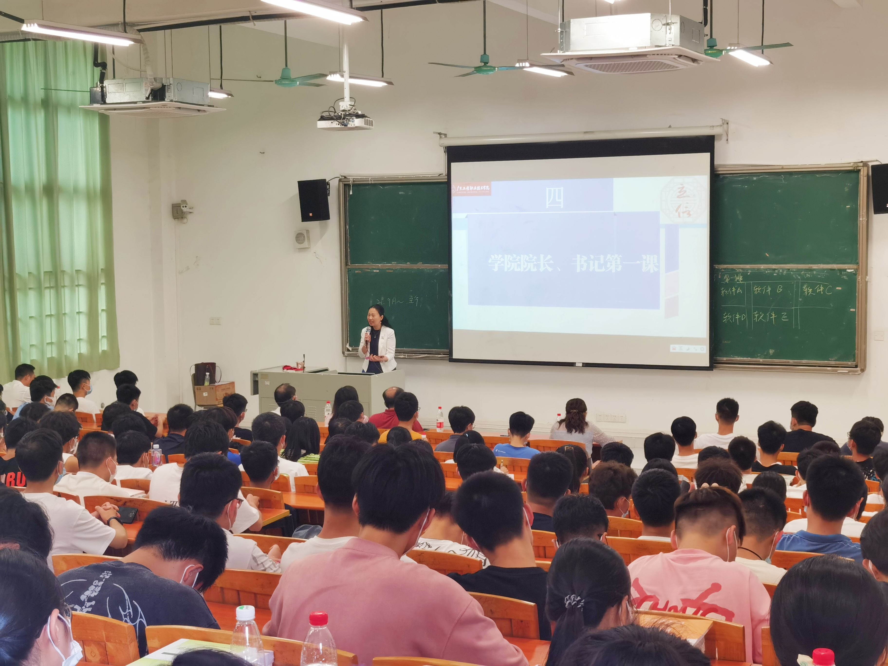 随后,院长、书记第一课正式开始。利业鞑院长表达了对新生的希望,通过学院发展史,专业教育,心理调整,学习方法,教学内容等多方面向新生介绍学院情况,鼓励同学们树立信心,学好专业,成为信息科技人才。桂爱民书记作了题为“弘扬立信 文化育人”的第一课,对新同学提出了三点期望:要立信念,做堪当民族复兴大任的栋梁之才;要立诚信,做诚信守法的表率;要立信心,做敢于创新,勇于追梦的时代新人。她还通过讲述杰出创业校友的故事,分享了立信语录:优秀源于清晰的目标、人才都是折腾出来的,把立信文化的种子播种到同学们的心田。