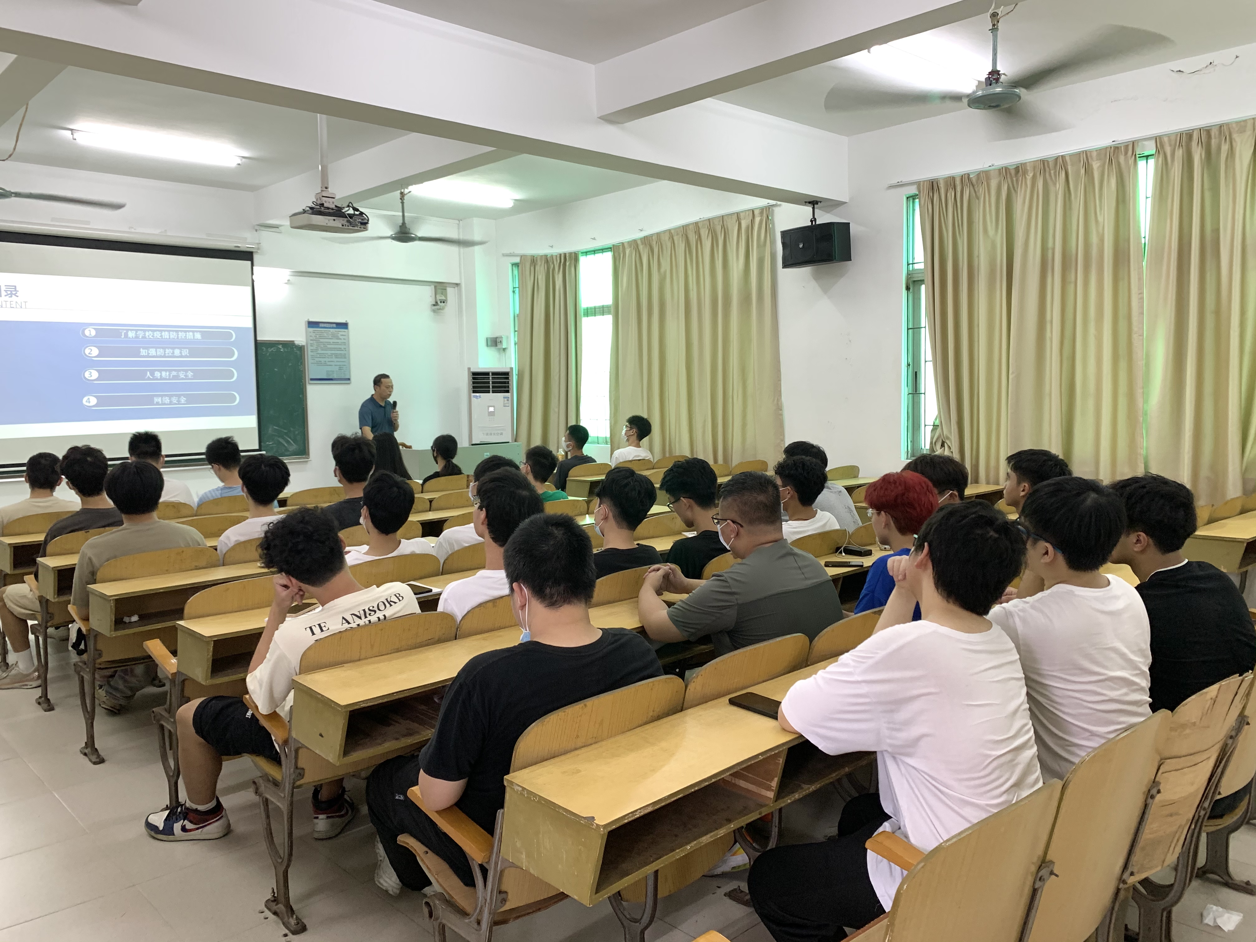 9月16日下午17:00,各班新生班主任准时在课室给新生召开了见面会暨安全教育主题班会。班主任与新生见面,让师生之间彼此了解熟悉。班会内容也让新生了解了学校的疫情防控措施,提醒新生加强防控意识,保护个人财产安全, 认识网络安全。班会的第二阶段,由学校义警队同学为新生开展了防诈骗安全教育,让新生提高防诈意识,避免上当受骗。