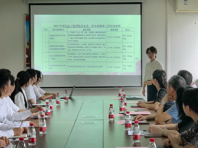 接着,由学生党员周凌珊同志做主题教育学习心得分享,学生第一党支部组织委员林莹作学生第一党支部工作汇报,回顾了去年支部整改情况,总结了今年上半年支部开展主题教育和青春向党宣讲团开展情况,并对下半年支部工作作了部署和安排。接下来由学生党支部支委委员、全体学生党员逐一开展批评与自我批评。