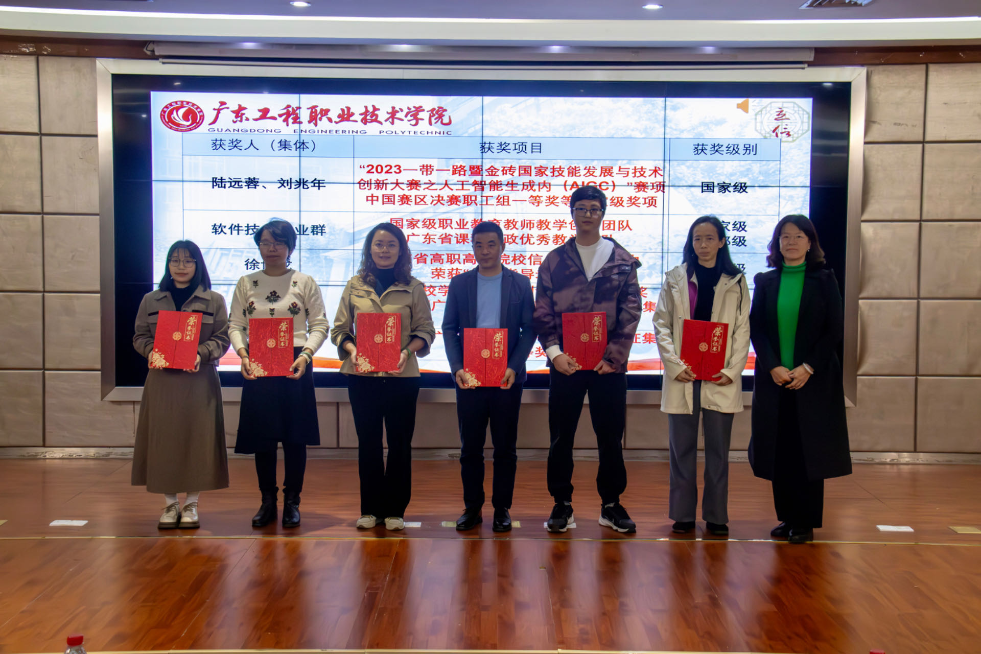 为全面总结2023年学院工作,表彰学院涌现出的优秀师生,展示我院各类活动风采,发挥优秀师生的示范作用,激励全体师生奋发上进,由学院院长利业鞑宣读学院《2023年十大最美年度人物表彰决定》和《学院2023年最美教师党员表彰决定》。在接下来的颁奖仪式上,颁奖嘉宾对2023年在各个方面获奖师生代表进行了颁奖。获最美教师党员代表甘娜老师发表了获奖感言,甘娜老师表示,广大信工学子要以技能大赛获奖的学生为榜样,不断激励自己勇往直前。然后由最美学生党员卢梓聪同志作青春向党宣讲展示,卢梓聪同志分享了中铁二局“爆破王”彭祥华的故事,在他身上充分展现了大国工匠不怕牺牲、热爱本职、尽职尽责、精益求精的精神本质,让在场的同学对工匠精神有了更深刻的认识。压轴出场的是由2023级数字媒体技术A班带来的“易路同行,我班我show”班级风采大赛的表演,充分展现了新生班集体积极向上的学习氛围和良好的精神风貌。